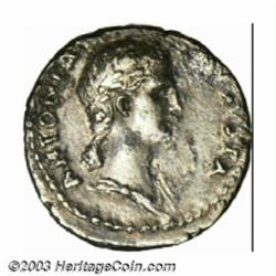 <TR><TD width="100%"><TABLE cellSpacing=1 cellPadding=3 width="100%" border=0><TBODY><TR><TD width="100%" bgColor=#79735c><FONT face=arial color=#ffffff size=3><B>Description</B> </FONT></TD></TR><TR><TD width="100%" bgColor=#ffffff><FONT face=arial size=2><B>Antonia,</B></I> AR denarius (3.52 g), struck under Claudius, 41-54 A.D., Draped bust right, wearing wreath of corn-ears/Two lighted torches, joined by garland, RIC 68(R2), AXF. A coin representing the daughter of Marc Antony and Octavia; mother to Claudius as well as the grandmother of Caligula. A truly rare and collectable coin for the advanced collector. </FONT></TD></TR></TBODY></TABLE></TD></TR></TBODY></TABLE><BR><A name=PricesRealized></A><TABLE cellSpacing=0 cellPadding=0 width="100%" bgColor=#000000 border=0><TBODY><TR><TD width="100%"><TABLE cellSpacing=1 cellPadding=3 width="100%" border=0><TBODY><TR><TD width="100%" bgColor=#79735c><A name=PR><FONT face=arial color=#ffffff size=3><B>Previous Prices from Heritage Auctions</B> </FONT></A></TD></TR><TR><TD bgColor=#f6f6ed>No Prior Data Recorded </TD></TR><TR><TD bgColor=#ffffff><FONT face=arial size=1 ?>PLEASE NOTE: All prices realized reflect the final hammer price PLUS the buyer's premium in auctions that charge a buyer's premium. Each item has a notation at the top of the listing indicating whether that lot included a buyer's premium. Example: A item that sells with a final hammer price of $100 and a 20% buyer's premium will display with a price realized of $120. All information listed is intended to be as accurate as possible, but errors are possible. Please use this guide carefully and inform us of any inaccuracies. </FONT></TD></TR></TBODY></TABLE></TD></TR></TBODY></TABLE><BR><TABLE cellSpacing=0 cellPadding=0 width="100%" bgColor=#000000 border=0><TBODY><TR><TD width="100%"><TABLE cellSpacing=1 cellPadding=3 width="100%" border=0><TBODY><TR><TD width="100%" bgColor=#79735c colSpan=6><FONT face=arial color=#ffffff size=3><B>Price Guide*</B> </FONT></TD></TR><TR bgColor=#f6f6ed><TD align=middle><B>Grade</B> </TD><TD align=middle><B>Coin World<BR>(Trends)</B> </TD><TD align=middle><B>Numismedia<BR>Retail</B> </TD><TD align=middle><B>Numismedia<BR>Wholesale</B> </TD><TD align=middle><B>Coin<BR>Universe</B> </TD><TD align=middle><B>Heritage<BR>Value Index</B> </TD></TR><TR bgColor=#ffffff><TD align=middle>15</TD><TD align=right>---</TD><TD align=right>---</TD><TD align=right>---</TD><TD align=right>---</TD><TD align=right>---</TD></TR><TR style="FONT-WEIGHT: bold" bgColor=#cccfdd><TD align=middle>20</TD><TD align=right>---</TD><TD align=right>---</TD><TD align=right>---</TD><TD align=right>---</TD><TD align=right>---</TD></TR><TR bgColor=#ffffff><TD align=middle>25</TD><TD align=right>---</TD><TD align=right>---</TD><TD align=right>---</TD><TD align=right>---</TD><TD align=right>---</TD></TR><TR bgColor=#ffffff><TD colSpan=6><FONT size=1>*All information listed is intended to be as accurate as possible, but errors are possible. No item may be returned or refused based on this information which is provided as a service to our customers. You should contact each pricing source directly to determine the accuracy of this information. </FONT></TD></TR></TBODY></TABLE></TD></TR></TBODY></TABLE><BR><TABLE cellSpacing=0 cellPadding=0 width="100%" bgColor=#000000 border=0><TBODY><TR><TD width="100%"><TABLE cellSpacing=1 cellPadding=3 width="100%" border=0><TBODY><TR><TD width="100%" bgColor=#79735c><FONT face=arial color=#ffffff size=3><B>Population Guide</B> </FONT></TD></TR><TR bgColor=#ffffff><TD align=middle></TD></TR></TBODY></TABLE></TD></TR></TBODY></TABLE><BR><TABLE cellSpacing=0 cellPadding=0 width="100%" bgColor=#000000 border=0><TBODY><TR> Important notice: We expect to be auctioning lots at the rate of 200-250 per hour. On occasion eBay live bid software cannot keep up with the pace of the auctions where 4-5 lots per minute can hammer down, so we recommend that you place a realistic absentee bid now as insurance to avoid disappointment. Also please note that all Heritage/CAA lots purchased through eBay Live carry a 20% Buyer's Premium. Please make sure you read the Terms and Conditions.