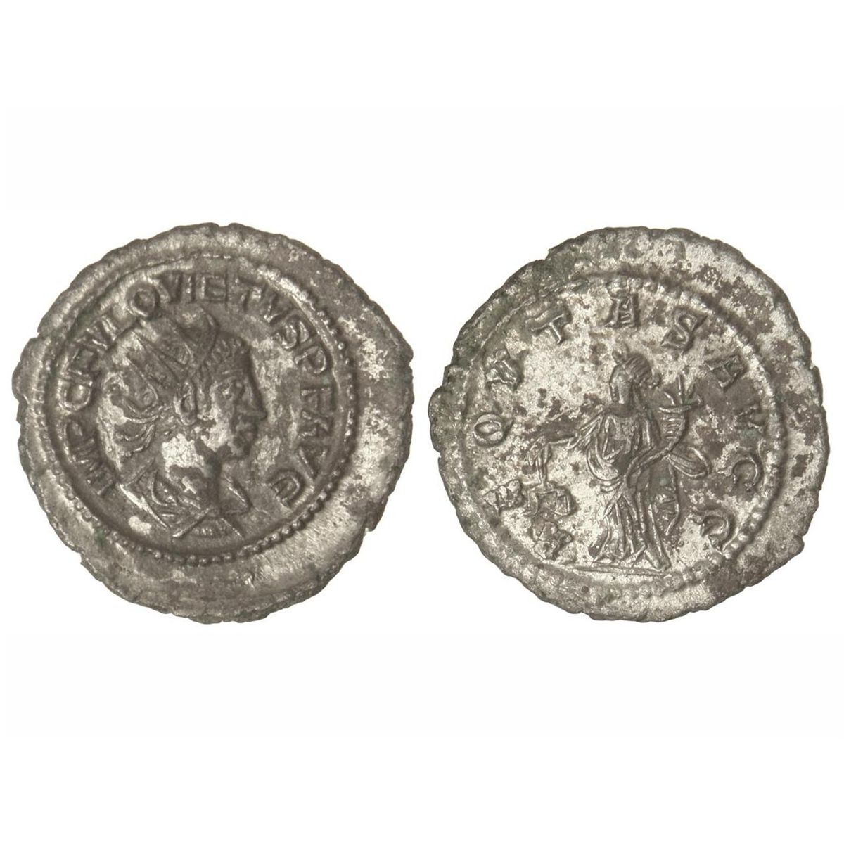Antoninano. - Acuñada el 260-261 d.C. - QUIETO. - Anv.: IMP. C. FVL. QVIETVS P. F. AVG. Busto radiado a derecha. Rev.: AEQTAS. AVGG. Equidad en pie a izquierda. 4,50 grs. AE. Plateado original. ESCASA. C-1. EBC. - -