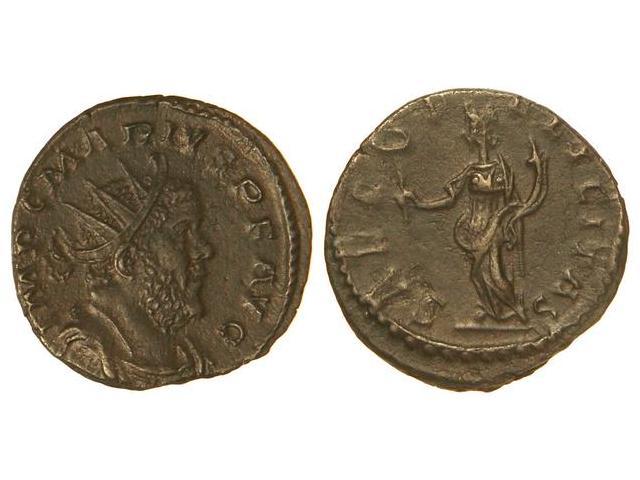Antoniniano. - 268 d.C. - MARIO. - Anv.: IMP. C. MARIVS P. F. AVG. Busto radiado a derecha. Rev.: SAEC. FELICITAS. Felicidad en pie a izquierda con caduceo y cornucopia. 2,70 grs. RARA. C-13. MBC+/MBC. - -