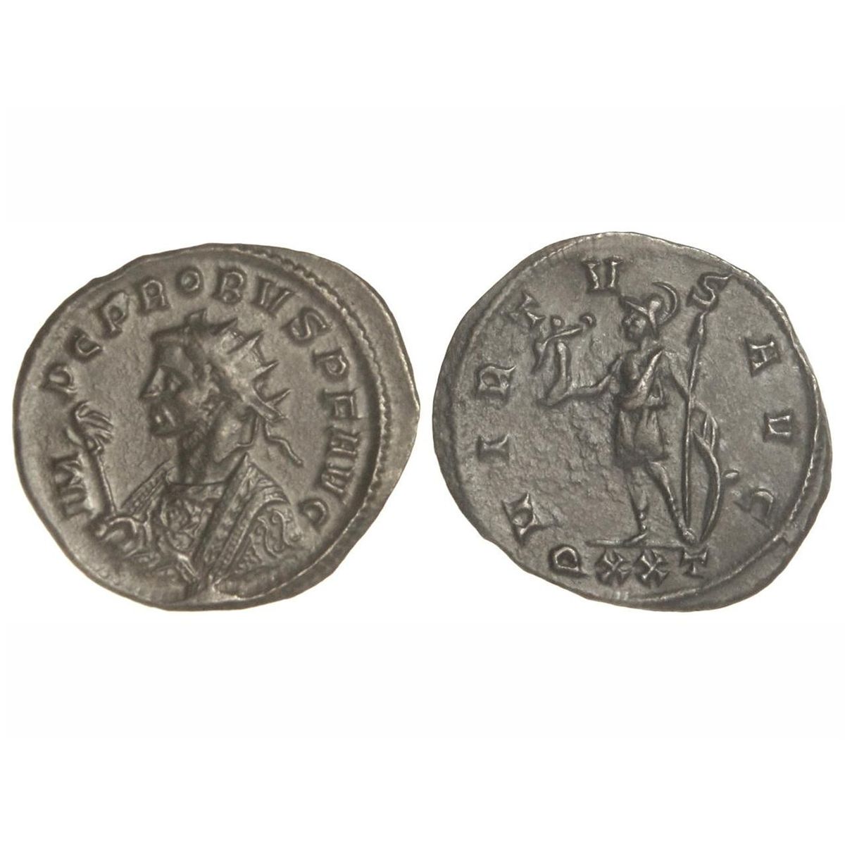 Antoniniano -. 276-282 d.C. - PROBO. - Rev.: VIRTVS AVG. Soldado en pie a izquierda con Victoria y lanza, mano izquierda sobre escudo. 3,50 grs. AE. MUY ESCASA. C-816. EBC-. - -