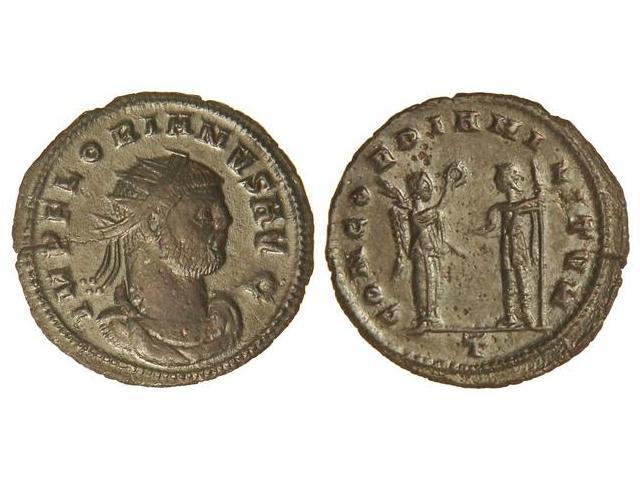Antoniniano. 276 d.C. FLORIANO. Rev.: CONCORDIA MILITVM. Floriano y Concordia estantes frente a frente. 3,50 grs. AE. Pátina marrón. FIC-97.5 var. EBC-.