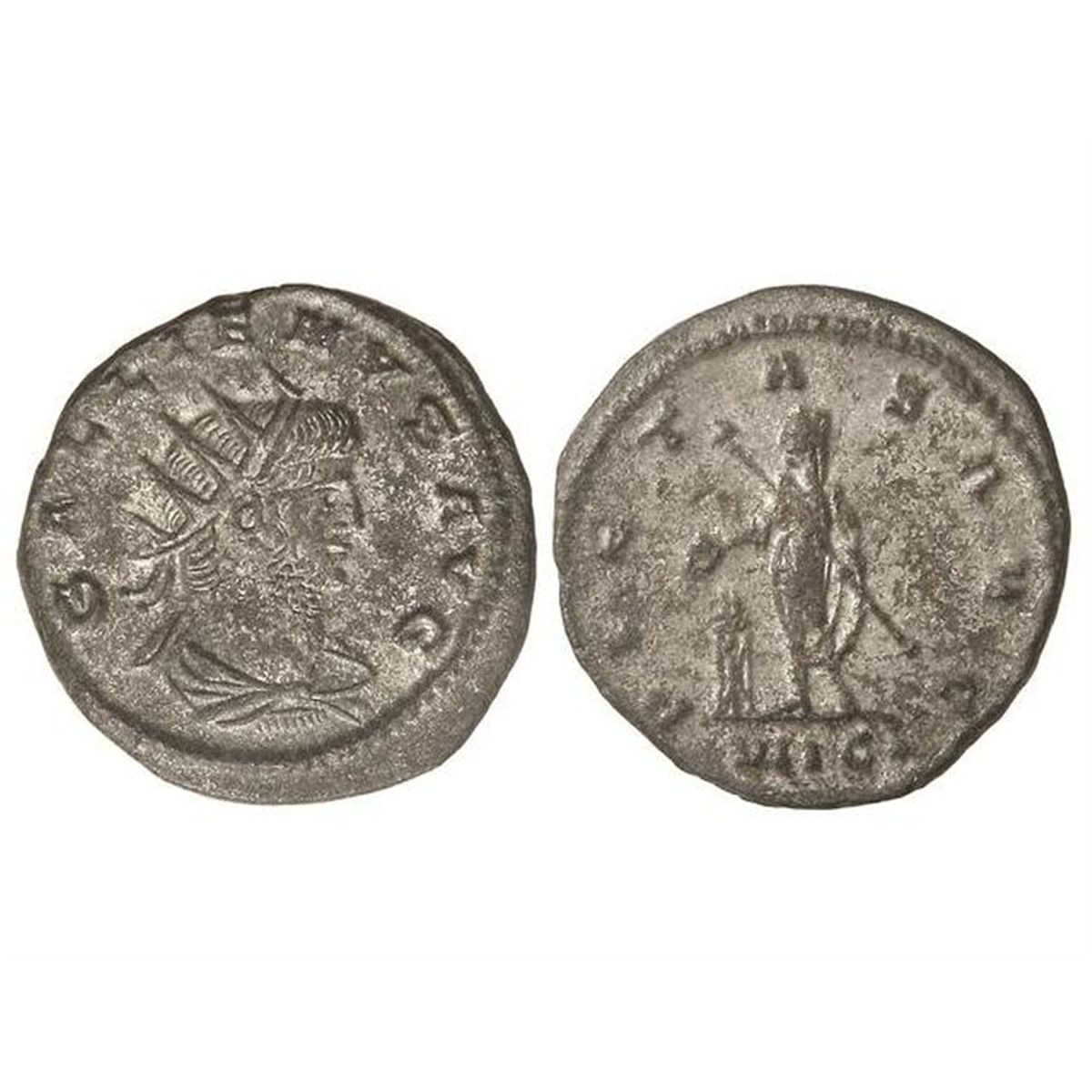 Antoniniano. - Acuñada el 260-268 d.C. - GALIENO. - Rev.: PIETAS AVG.VII C. Galieno velado en pie a izquierda con cetro y pátera ante un altar. 3,90 grs. Ve. Restos de plateado original. C-788. MBC+. - -