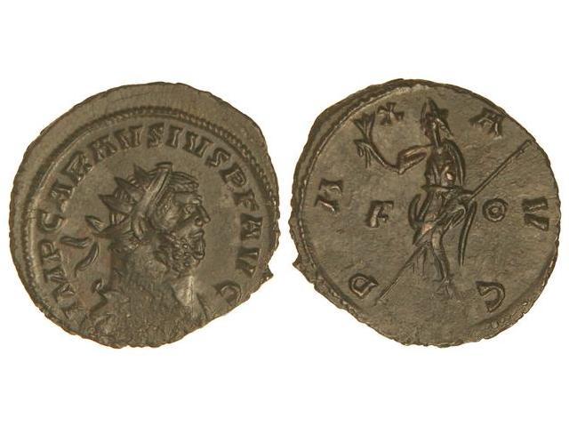 Antoniniano. - Acuñada el 287-293 d.C. - CARAUSIO. - Anv.: IMP. CARAVSIVS P. F. AVG. Busto radiado a derecha. Rev.: PAX AVG. En exergo: FO. Paz estante a izquierda portando cetro y globo. 4,90 grs. (Defecto de acuñación). C-209. EBC-/MBC+. - -