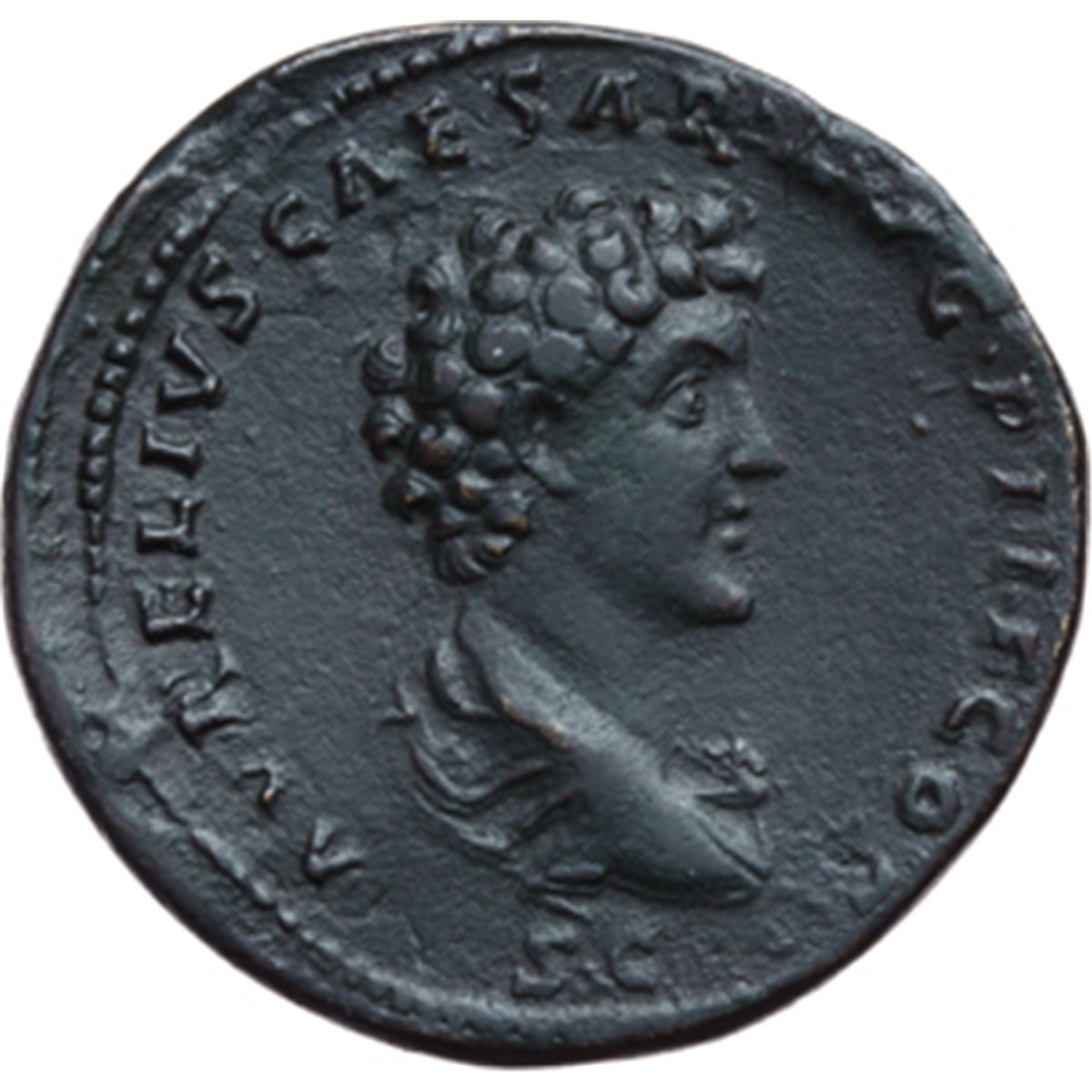 Impero Romano. Antonino Pio e Marco Aurelio. Sesterzio. D/ ANTONINVS AVG PIVS PP TR P COS III. Testa laureata di Antonino a destra. R/ AVRELIVS CAESAR AVG PII F COS. Busto a testa nuda, drappeggiato, di Marco Aurelio a destra. RIC 1212. AE. g. 22.81 R. SPL. Di grande qualitv†. Patina scura.