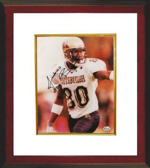 While playing college football at the University of Pittsburgh, Antonio Bryant won the Fred Biletnikoff Award in 2000, as the most outstanding college wide receiver. Antonio Bryant has hand autographed this Pittsburgh Panthers 8x10 Color Photo. White Mat and Premium Wood Color Framed as shown. FI Holo and Certificate of Authenticity from Athlon Sports.