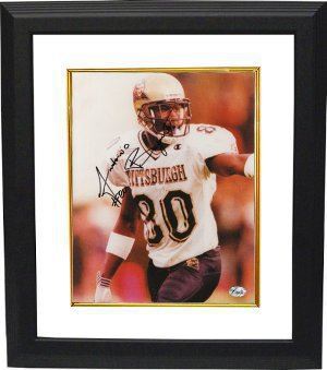 While playing college football at the University of Pittsburgh, Antonio Bryant won the Fred Biletnikoff Award in 2000, as the most outstanding college wide receiver. Antonio Bryant has hand autographed this Pittsburgh Panthers 8x10 Color Photo. Custom White Mat and Premium Black Color Framed as shown. FI Holo and Certificate of Authenticity from Athlon Sports.