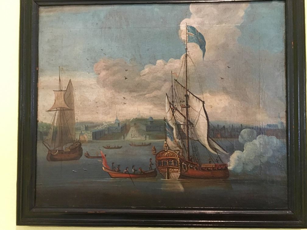 Frigates in Harbour by Antonia Lombardo 1600-1673 Primitive 17th Century Oil size 12x14.25"