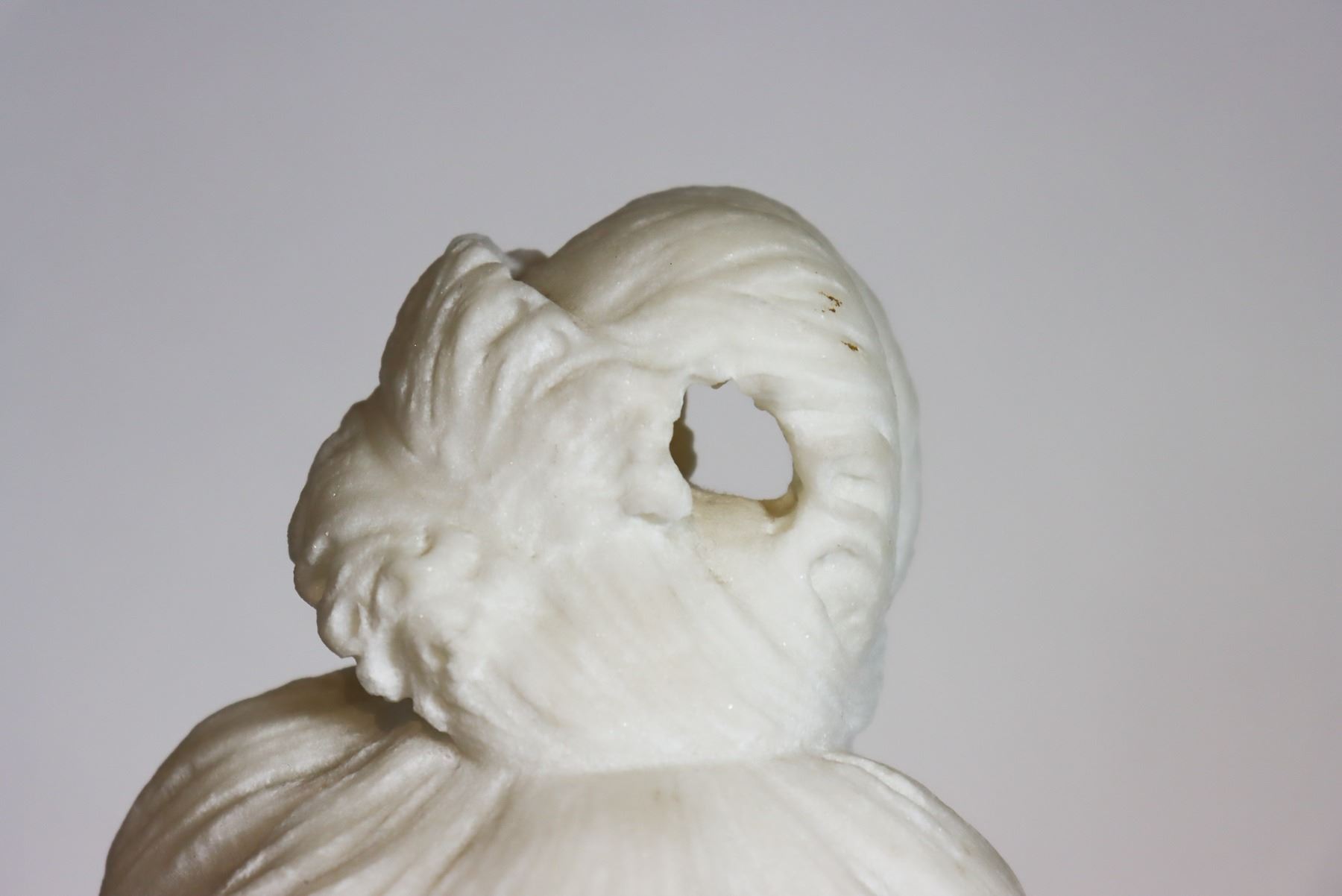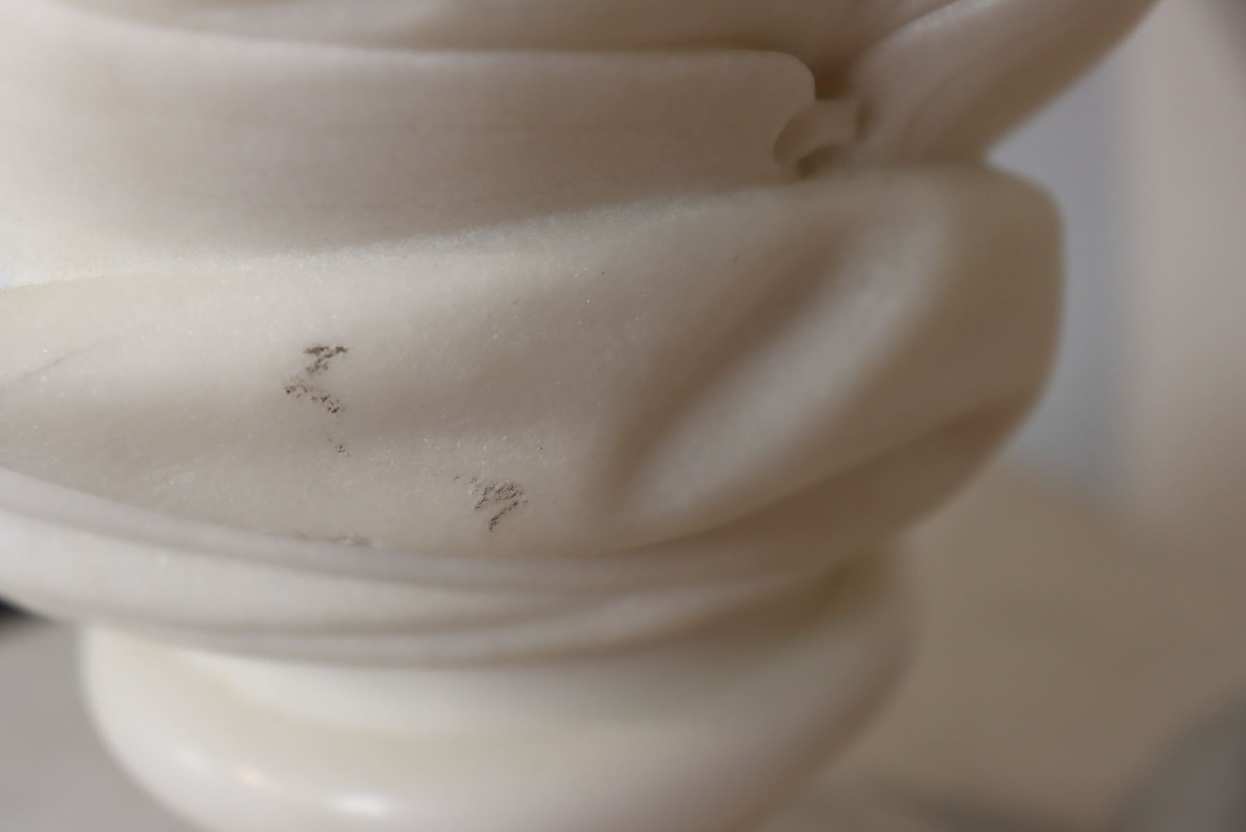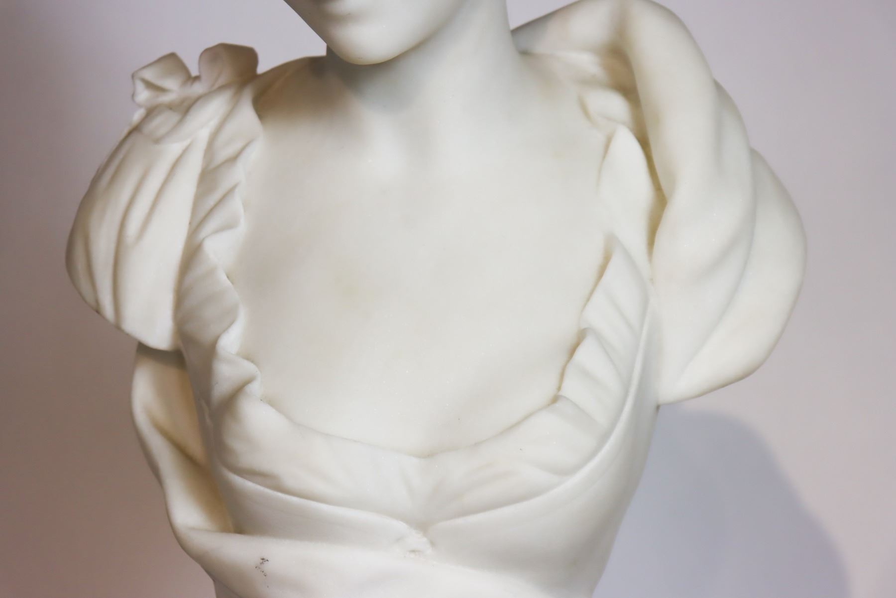 Carrara marble bust of a beautiful young woman, gorgeous piece of heavy sculpture, signed A. Piazza, Carrara. Excellent condition, marble plinth is separate from sculpture.