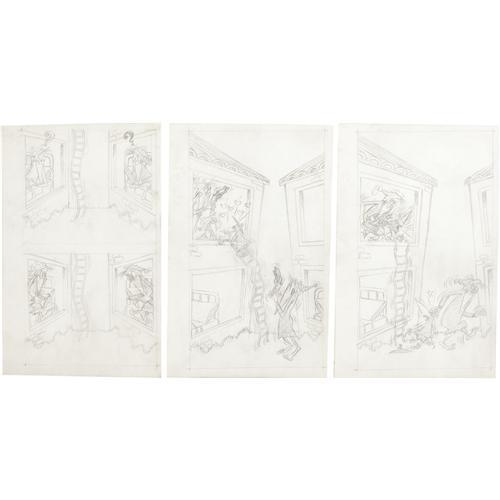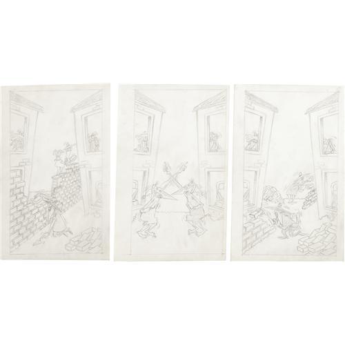 <B>Antonio Prohias - Complete 10-page Spy vs Spy Story Original Art (EC, circa 1970).</B></I> Those masters of disaster, the Black Spy and the White Spy, add even more double-dealing to their lives with a "Romeo and Juliet romance" started up by their kids. Each penciled page has an approximate overall size of 8" x 12", and aside from some smudging on a couple of the pages, the art averages Excellent condition.<BR><BR><b>Shipping:</b> Flat Material, Small (<a target="_blank" href="http://www.heritageauctions.com/common/shipping.php">view shipping information</a>)