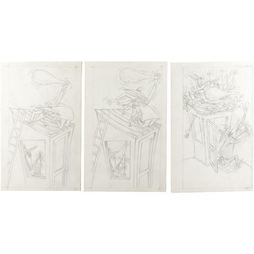 <B>Antonio Prohias - Complete 9-page Spy vs Spy Story Original Art (EC, circa 1970).</B></I> It's time to celebrate and raise a glass of bubbly to another crazy clash between the Black Spy and the White Spy! These two always have a blast trying to outwit each other and this 9-page yarn is just another fine example of their Cold War cut-ups. Each penciled page has an approximate overall size of 8" x 12.5", and the art averages Excellent condition.<BR><BR><b>Shipping:</b> Flat Material, Small (<a target="_blank" href="http://www.heritageauctions.com/common/shipping.php">view shipping information</a>)