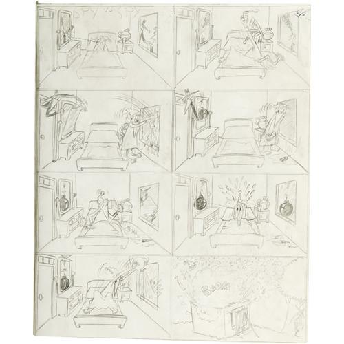 <B>Antonio Prohias - Mad #143, "Spy vs Spy" Page Original Art (EC, 1971). </B></I> Talk about classified documents -- feast your eyes on this pencil preliminary from the "Joke and Dagger Dept." of Mad #143 -- it will blow your mind! The overall size of this preliminary page measures approximately 14" x 17", and the art is in Very Good condition.<BR><BR><b>Shipping:</b> Flat Material, Small (<a target="_blank" href="http://www.heritageauctions.com/common/shipping.php">view shipping information</a>)