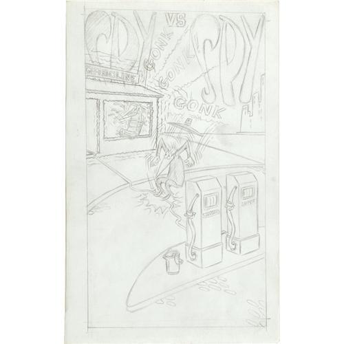 <B>Antonio Prohias - Spy vs Spy Cover Preliminary Original Art (EC, circa 1970).</B></I> The Black Spy has invented a terrible torture technique to use on the White Spy -- the dreaded gas station bell ring -- watching the dollar signs on the gas pump roll by might be worse! This detailed, penciled cover gag has an approximate overall size of 8" x 12.5", and the art is in Excellent condition.<BR><BR><b>Shipping:</b> Flat Material, Small (<a target="_blank" href="http://www.heritageauctions.com/common/shipping.php">view shipping information</a>)