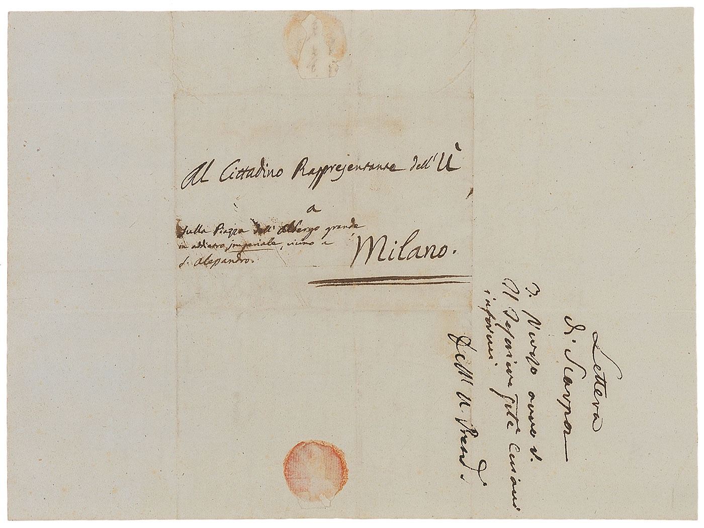 Italian anatomist (1752–1832) who wrote several important treatises on a wide range of anatomical and medical subjects. Scarce ALS in Italian, one page, 7.5 x 10, December 18, [1796]. Lengthy letter to the representative of the French Republic in recently occupied Pavia. Scarpa writes that he "as every good citizen should do" has agreed to pay the new military tax of 600 lire imposed by the French, despite not having been paid the salary he is entitled to as director of surgery in the medical school for two months, even though his colleagues have been paid. He attributes the mistake to the fact that treasurer Giuseppe Ceriani has not yet signed the necessary papers and trusts that his correspondent, Ceriani's superior, will remind him of this injustice. After payments are resumed Scarpa says he will be better able to maintain the regularity of his classes, where the students have been showing great zeal and assiduity. In fine condition, with seal-related paper loss to the integral address leaf.