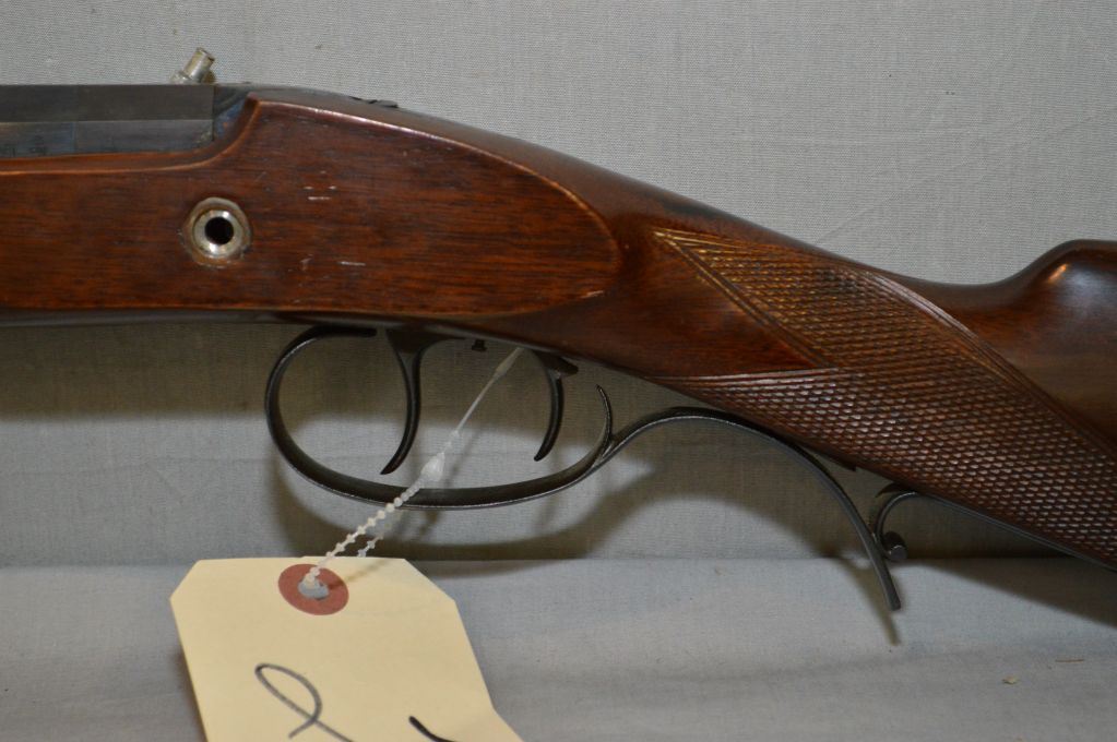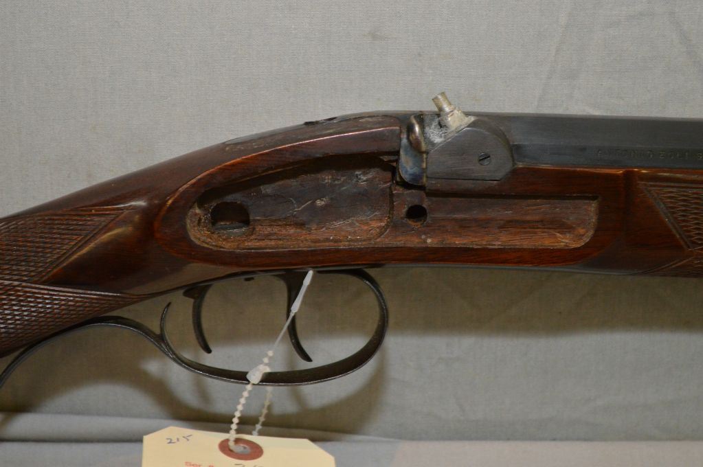 Antonio Zoli ( Italy ) Model Kentucky Style .50 Perc cal Single Shot Black Powder Rifle w/ 27" oct bbl [ blue finish, barrel sights, half stocked w/ case colored furniture including patch box, etc., double set triggers, missing the lock & parts including the hammer, inside spring, etc, has brass tipped ramrod ] Ser # 31063