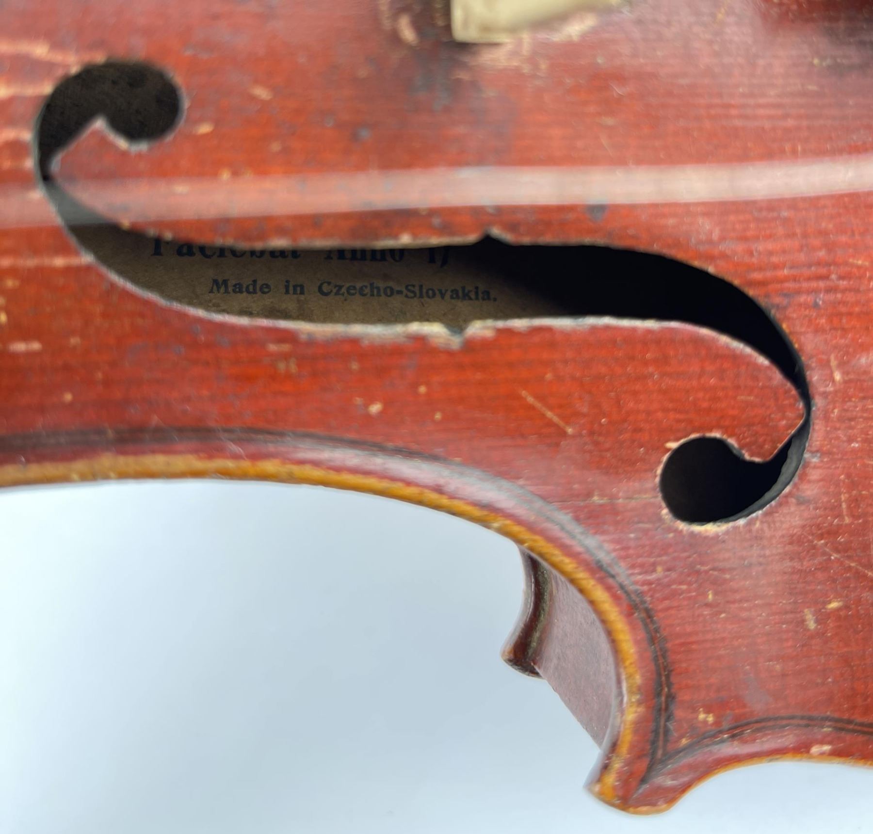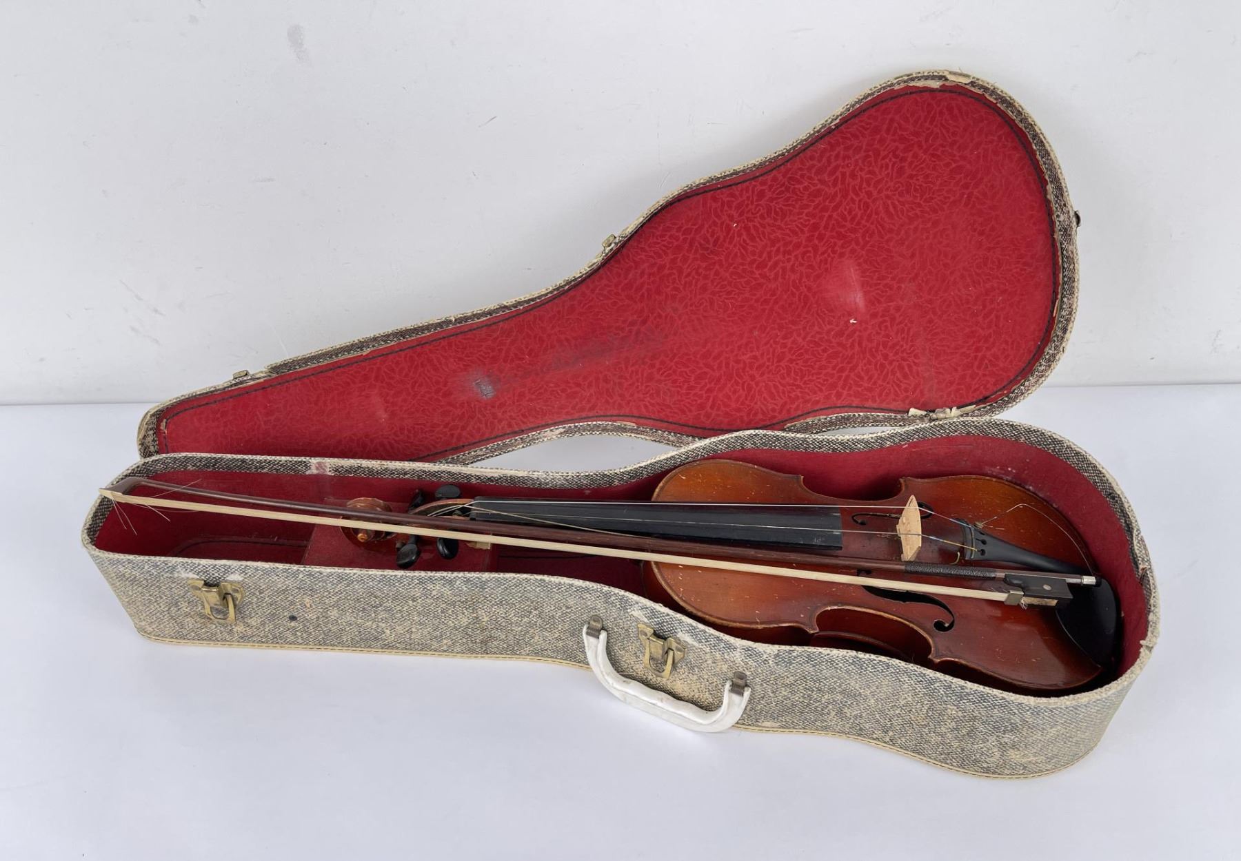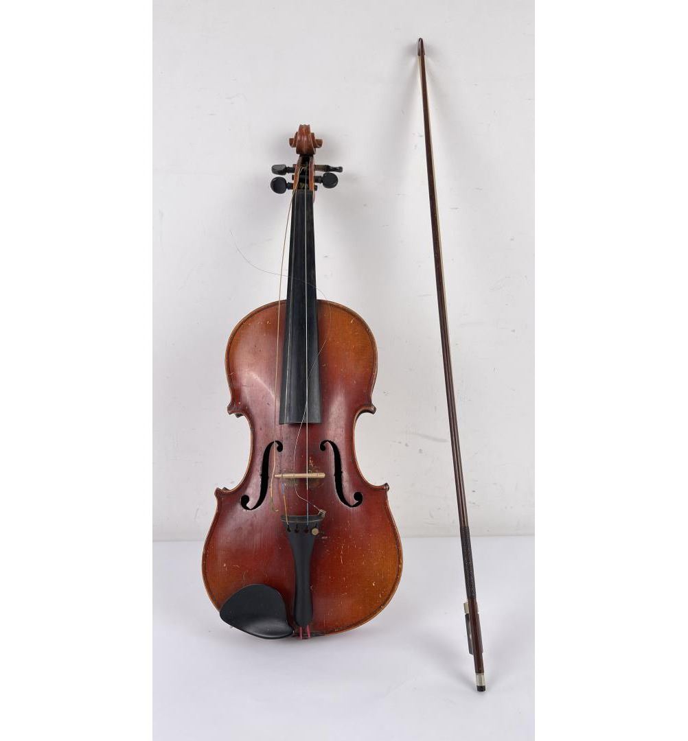 With case and bow. Made in Czechoslovakia. Violin is approximately 23" long, bow measures approximately 29" long. Bow is a Josef Richter.