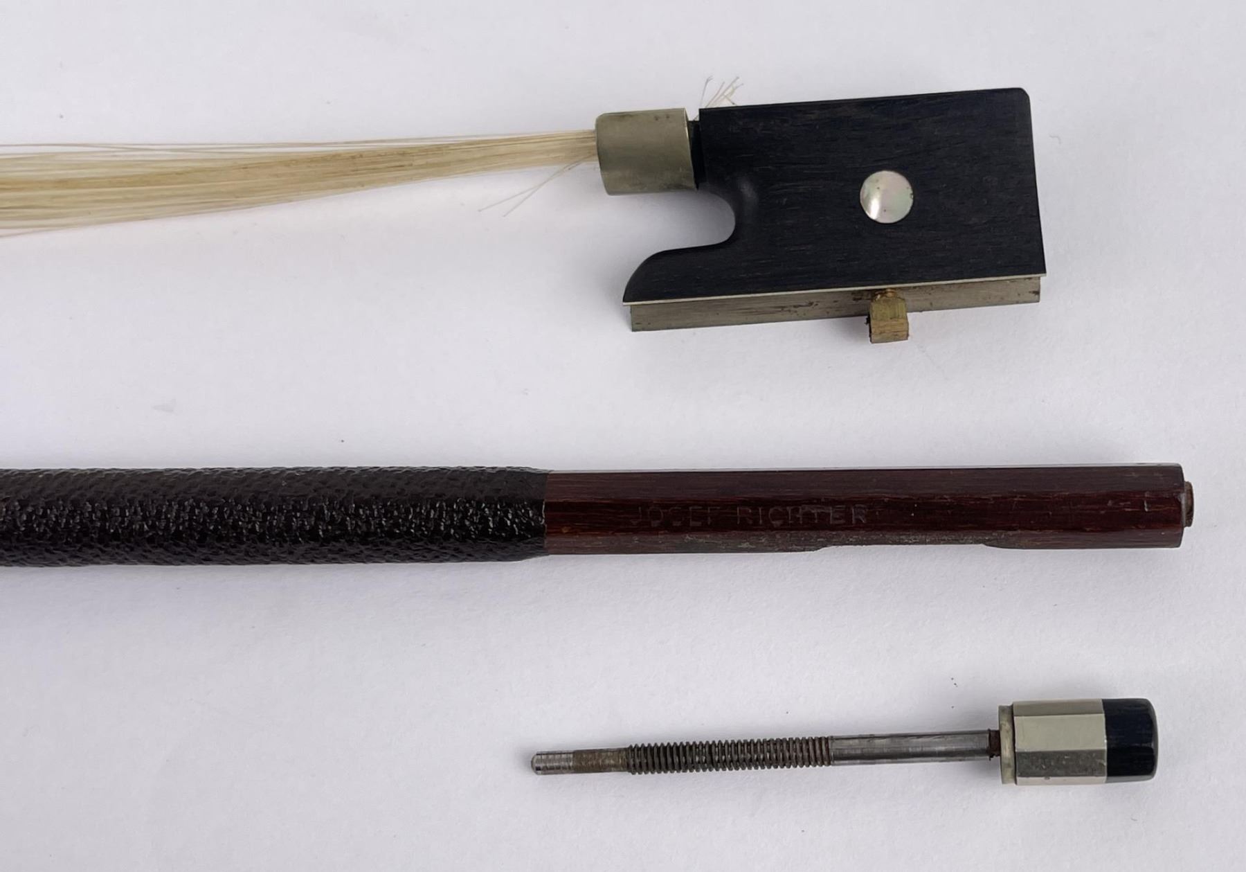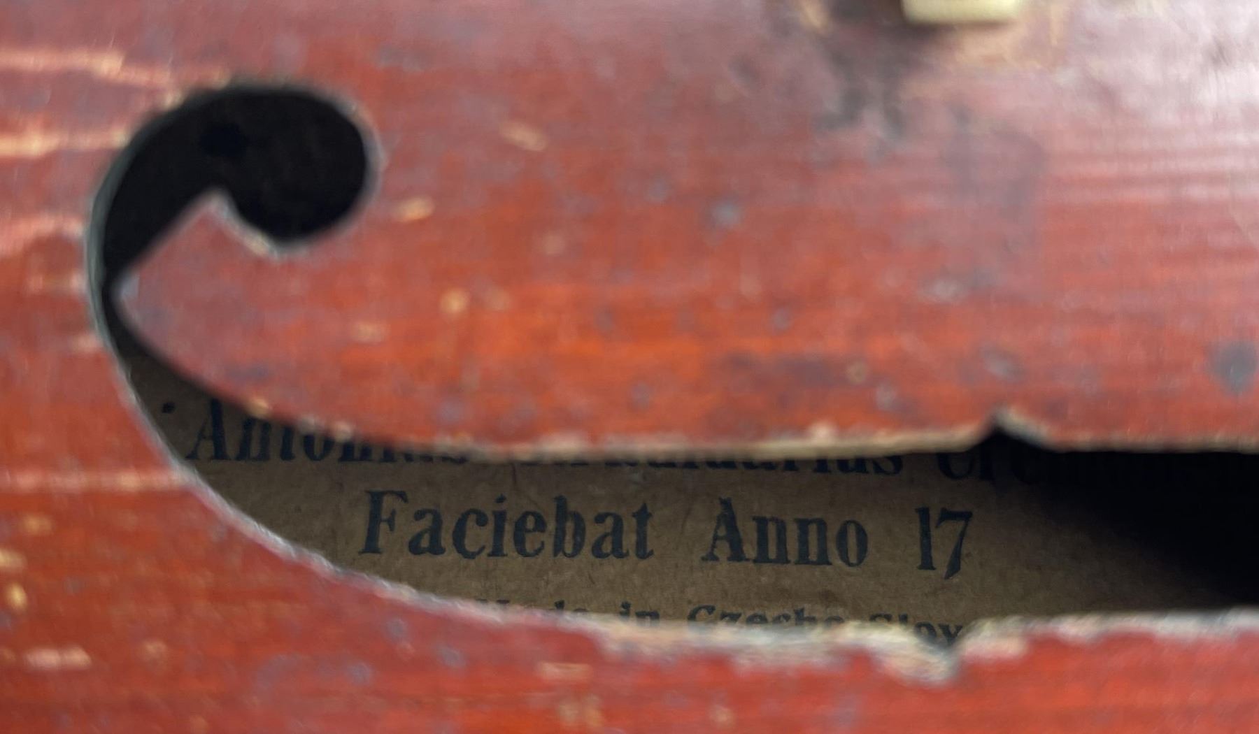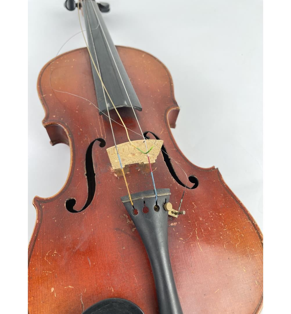 With case and bow. Made in Czechoslovakia. Violin is approximately 23" long, bow measures approximately 29" long. Bow is a Josef Richter.