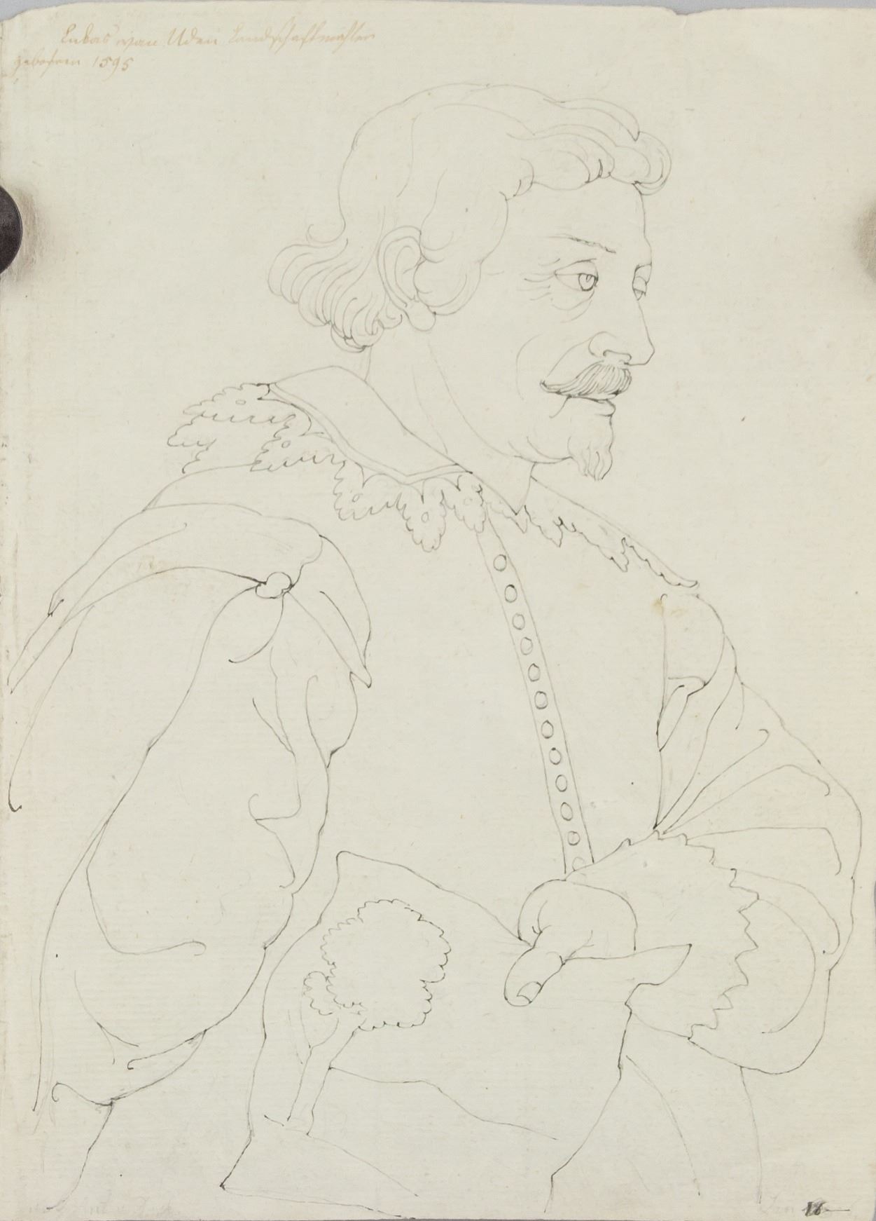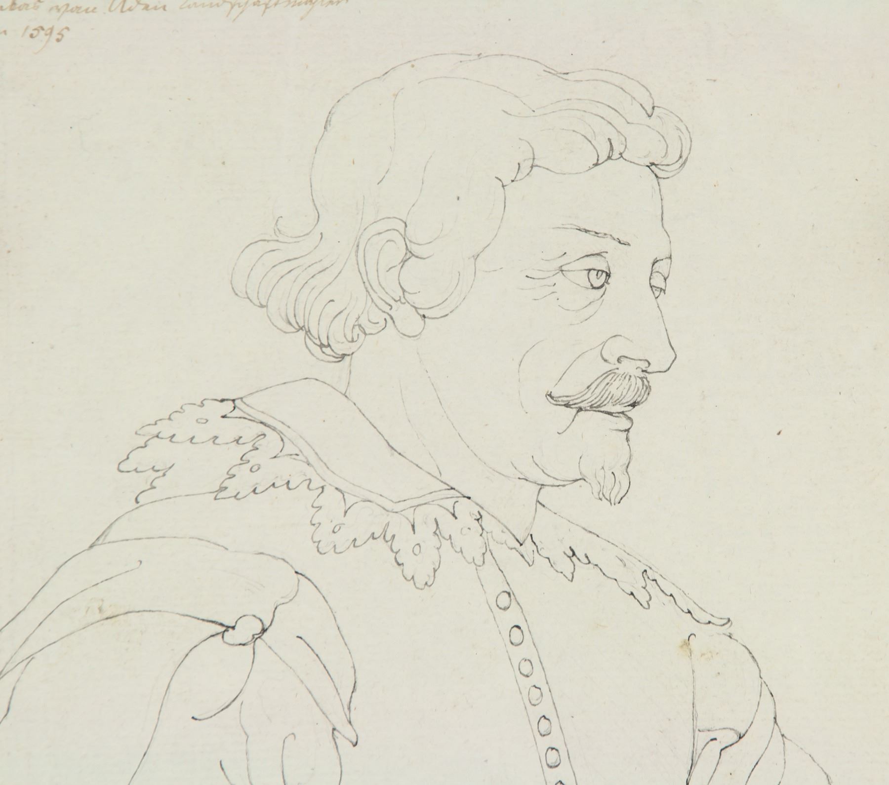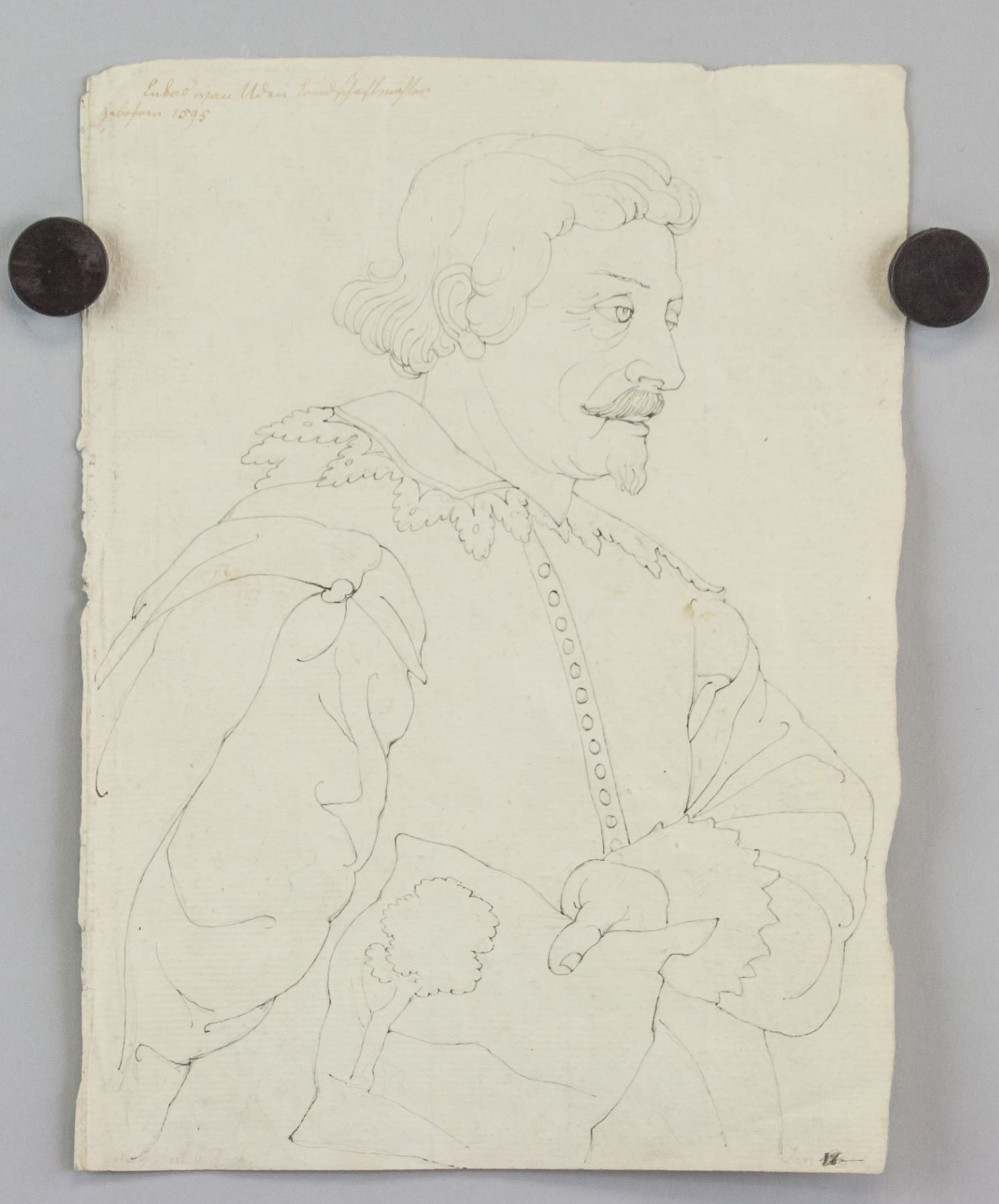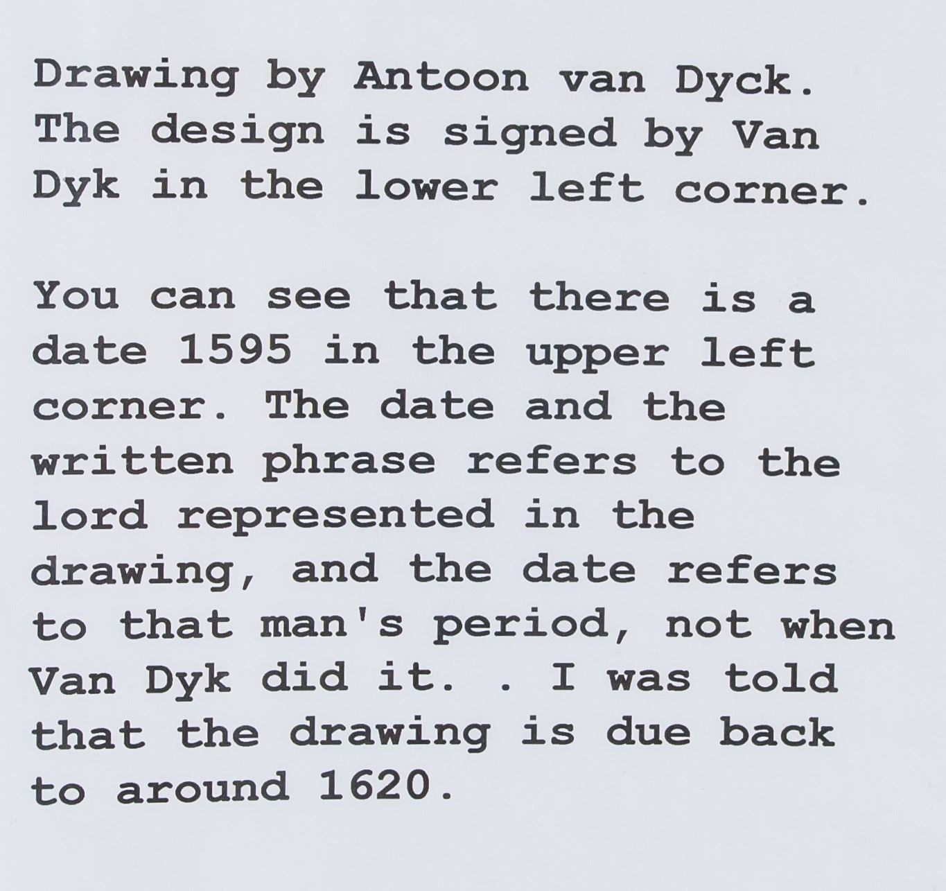 Ink on paper. Featuring portrait of a man. Attributed to Antoon Van Dyck (15/-1641, Flemish-English) and inscribed 1595. 8.5 x 6 in (21.6 x 15.2 cm).
