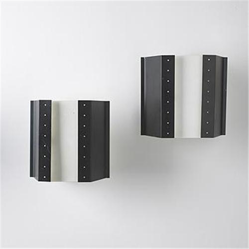 Anvia sconces, pair c. 1950 enameled steel 8.5 w x 7.5 d x 7.5 h inches