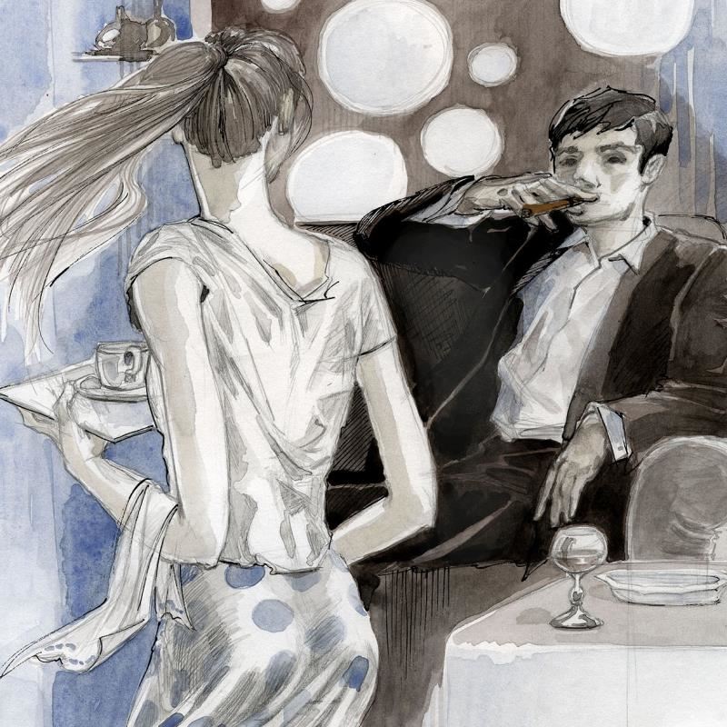 "Anything Else" is an original painting, mixed media (ink and gouache) on vellum art paper, by Lena Sotskova. This piece is hand signed by the artist, hand titled, and accompanied by a certificate of authenticity. Measures approximately 17" x 14".