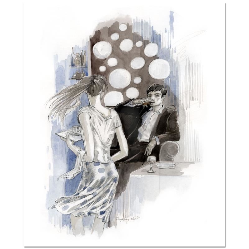 "Anything Else" is an original painting, mixed media (ink and gouache) on vellum art paper, by Lena Sotskova. This piece is hand signed by the artist, hand titled, and accompanied by a certificate of authenticity. Measures approximately 17" x 14".