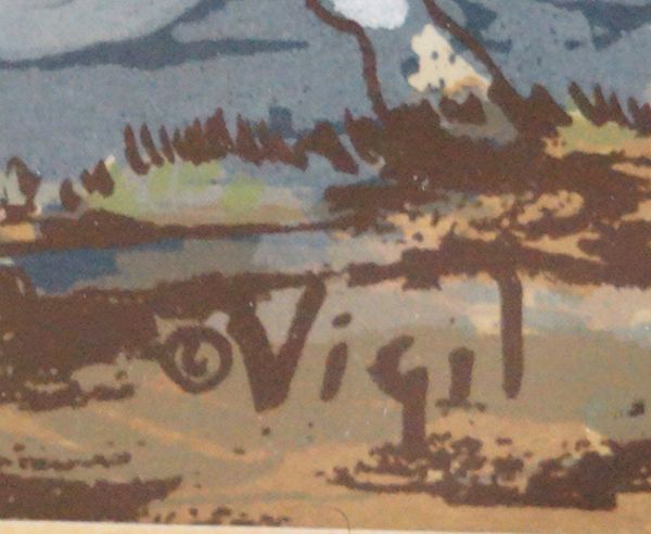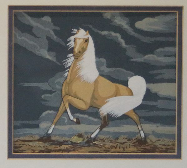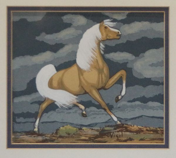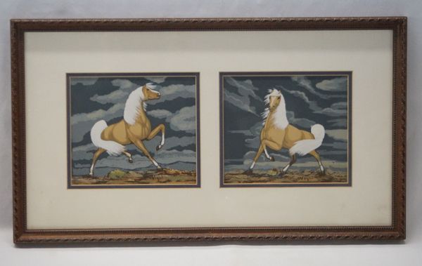 Apache Artist Frank Vigil Framed Silkscreen, two pictures one frame, each visual measures 6'' x 5'', Palomino Horses, double matted, framed and under glass, nice display