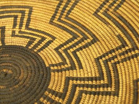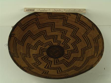 Circa 1920s, Classic finely woven basket tray with repeated radiating stepped motif. Very good condition. Ex: Frank Curley collection. 5" x 16"