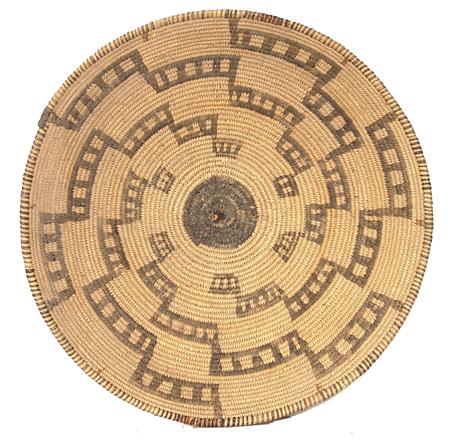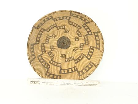 Circa Early/Mid 1900s, Traditional shallow tray with repeating stepped box design. Very good condition, some fading. 3-1/2" x 12-1/2" From the Burks Collection.