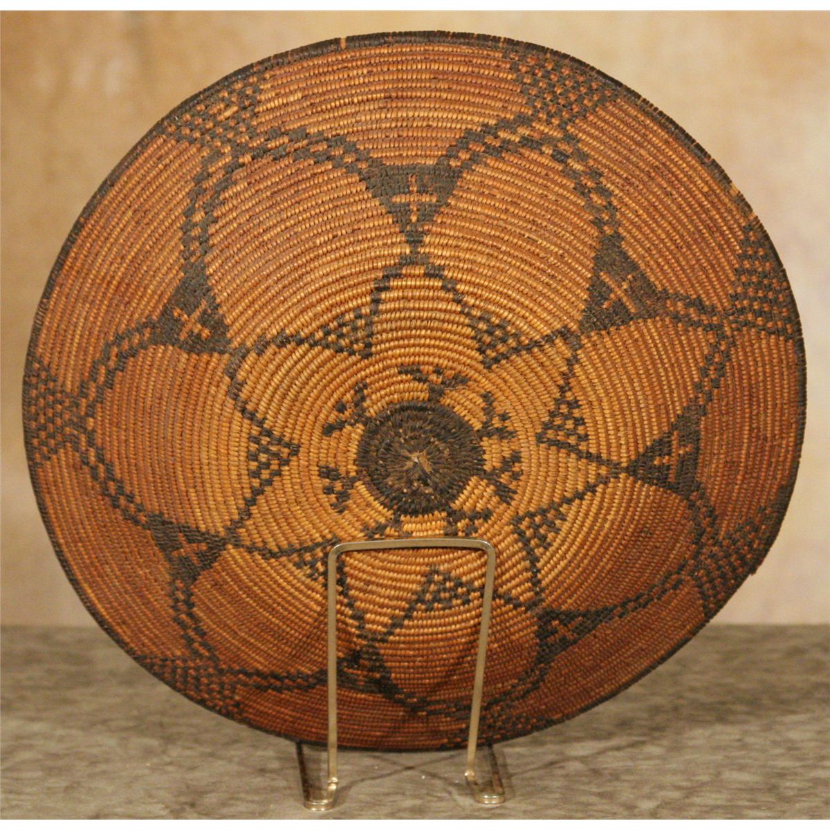 Apache Basket. 11.5" diameter. Fine, tight weave with snowflake and geometric designs. Circa 1900.