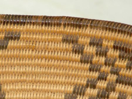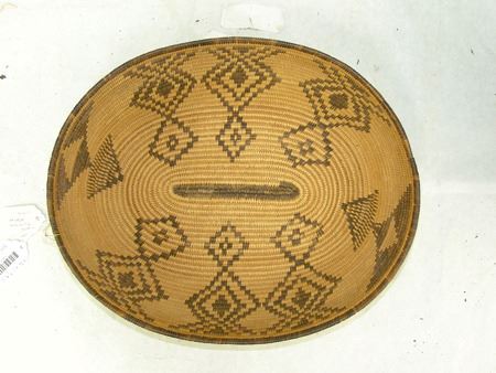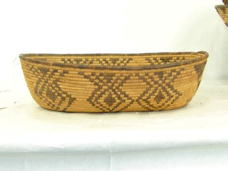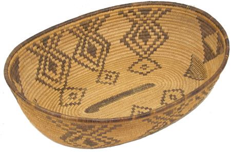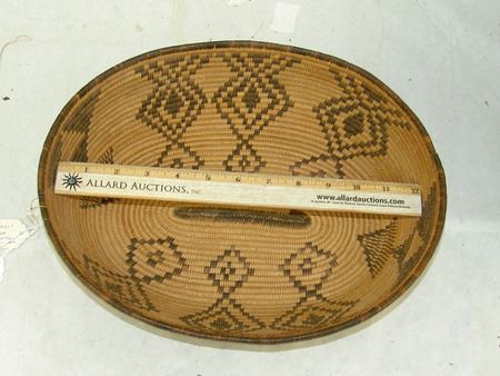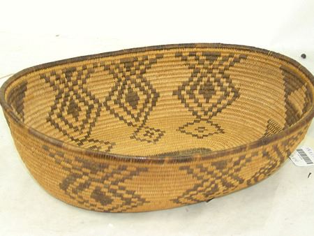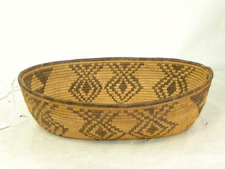 Early 1900s, Rare oval shaped basket with vertical rattlesnake diamonds around and narrow black center. Excellent condition. 3-3/4" x 13" x 11"