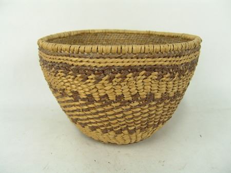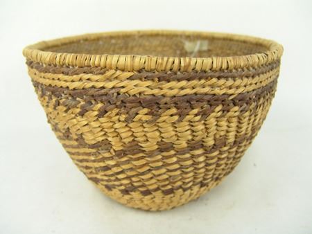 Early/Mid 1900s, Hard to find White Mountain Apache bowl with wrapped rim, done in twined "burden basket" weave. Very good condition, a little dusty. 6" x 9-1/2"