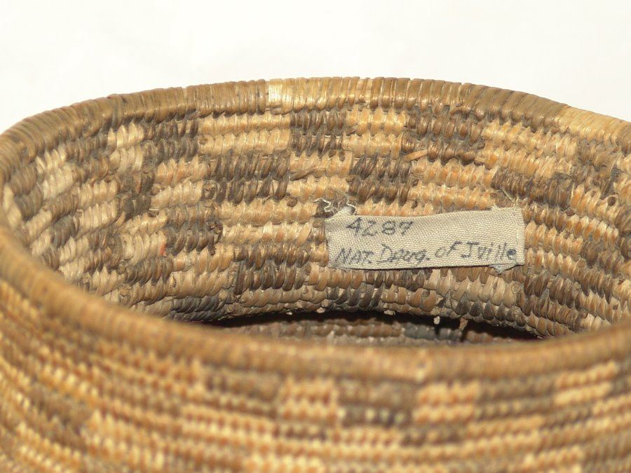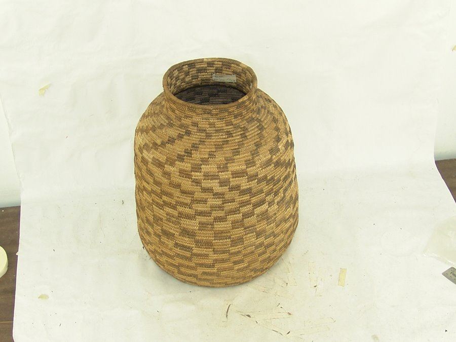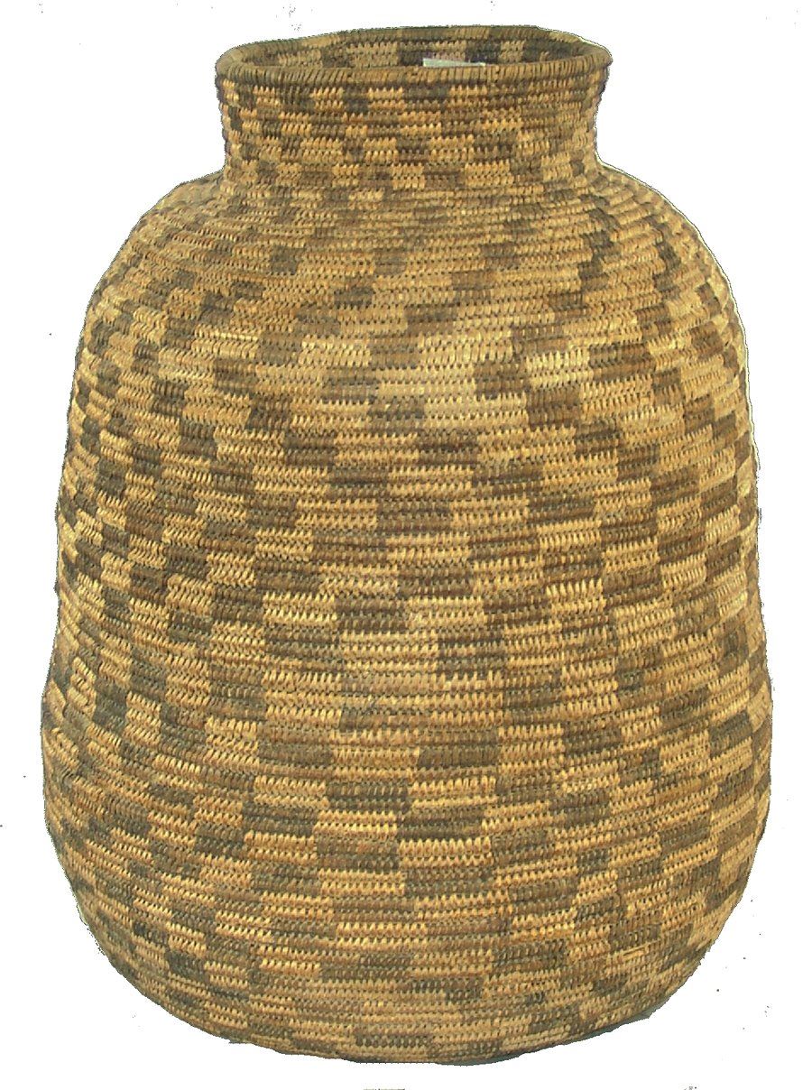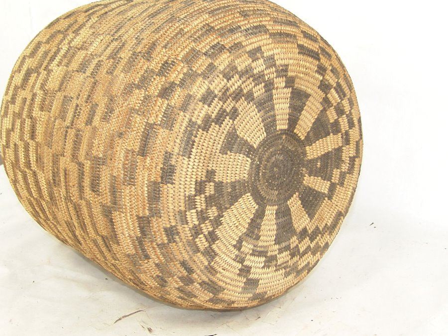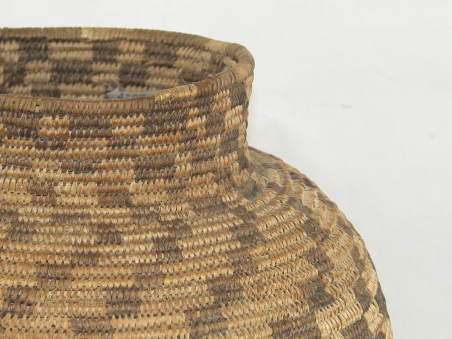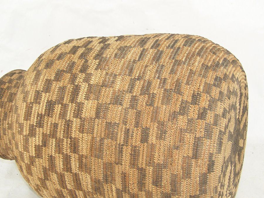 Wonderful early olla with radiating stepped box pattern. This is sturdy and intact and has great patina, but you can see some wear that comes from use. Good condition.,,15" x 11"