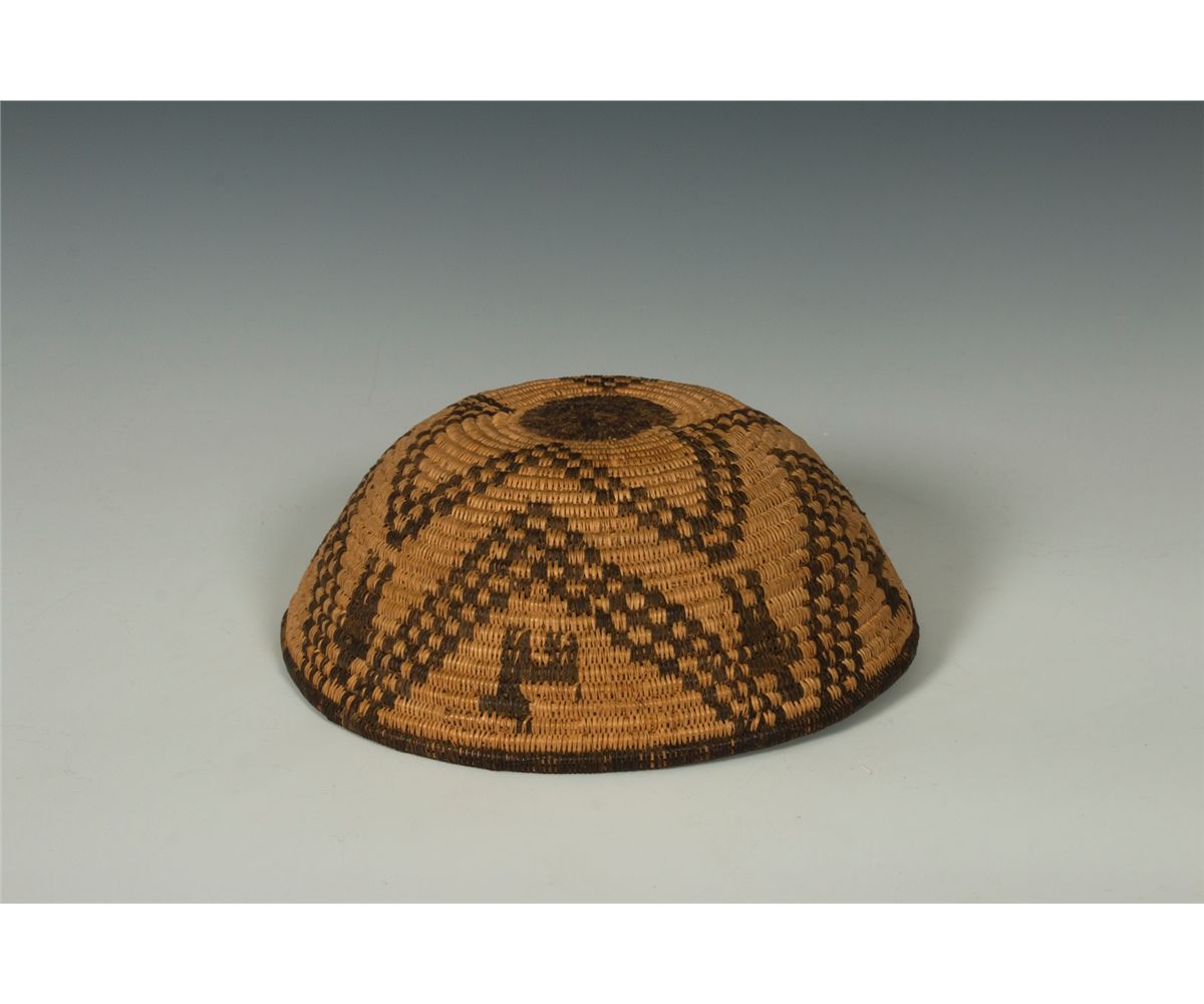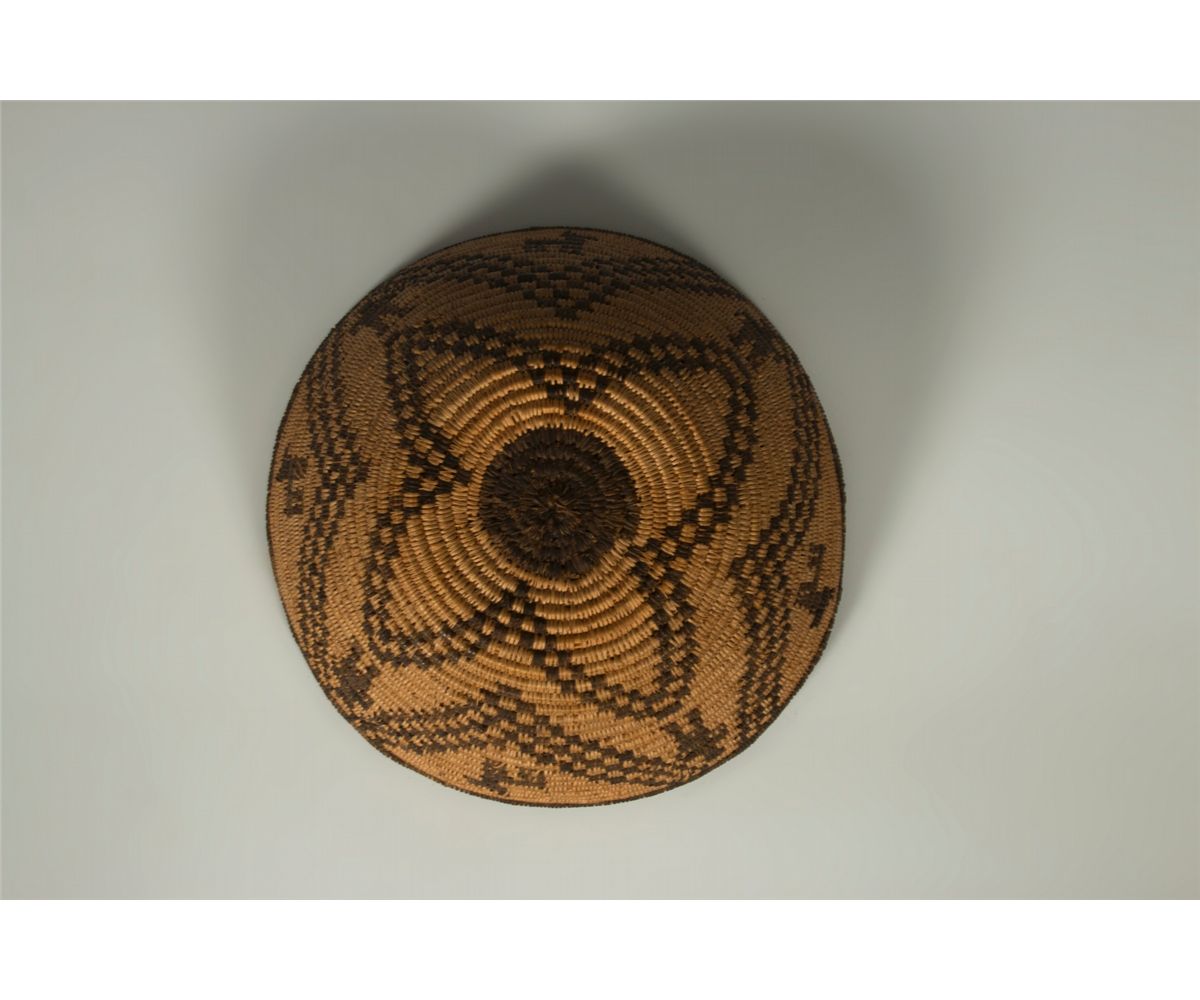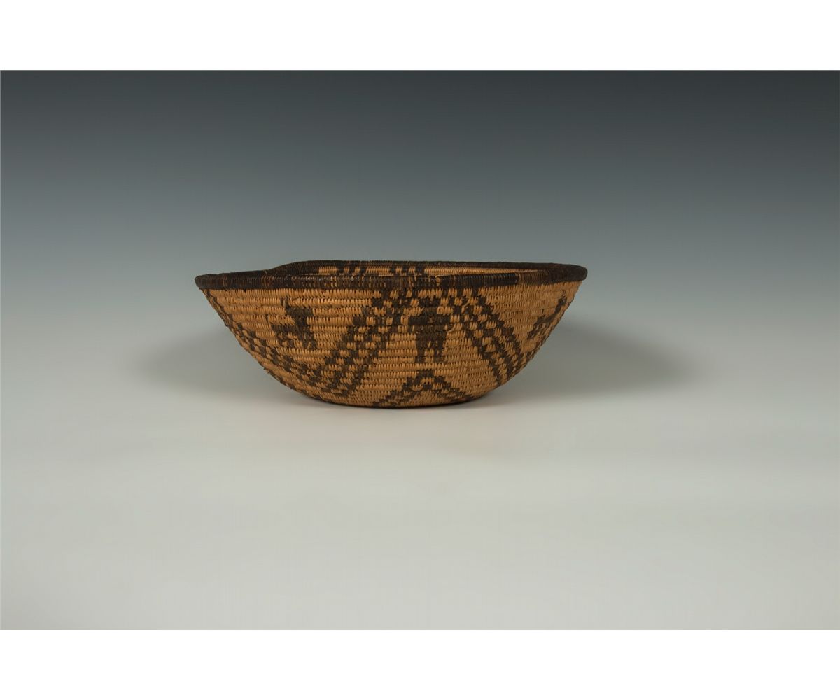 Apache Basketry Bowl. 9.75" diameter, 3.5" tall. Star design with alternating human and dog figures. Circa 1920s.
