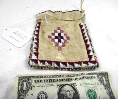 Apache Beaded Bag from 1910's, condition is very good. The bag is beaded deerskin with different design on each side. The bad measures 5 x 7 inches. Condition some minor bead loss and some staining Shipping $12.50