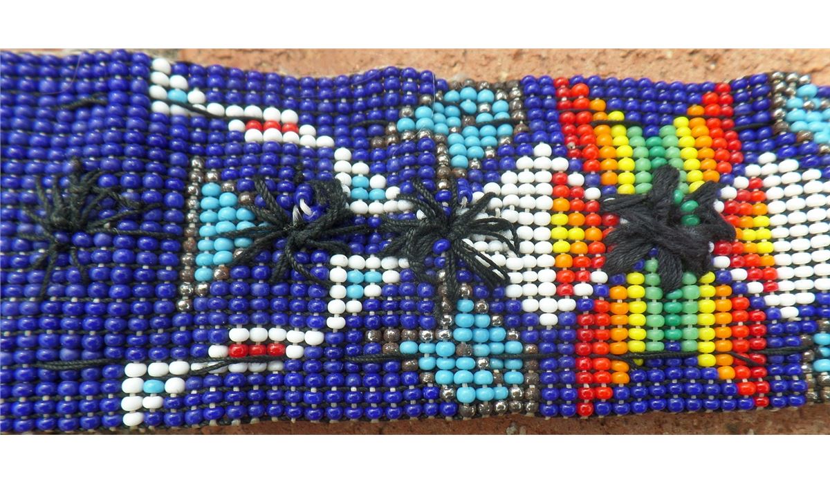 Apache Beaded Belt, late 20th century. Belt measures 44" x 1.5", and buckle measures 4.25" x 2.5". Made of leather and glass beads. Apache, northern Arizona. Makes a great gift! Condition: Great, see images. Shipping: $14.50.