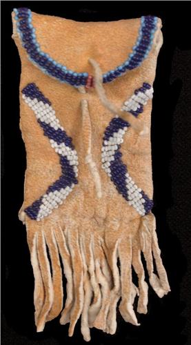 Apache Beaded Paint Bag. 5 ½” x 2". Yellow ochre on hide. Fine condition. (est $300-500)