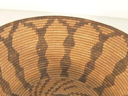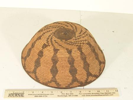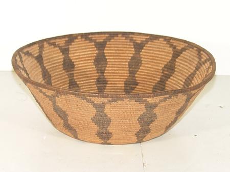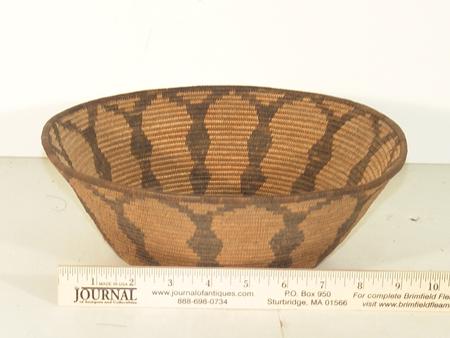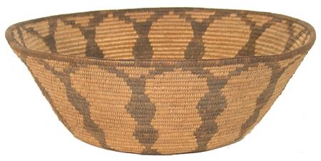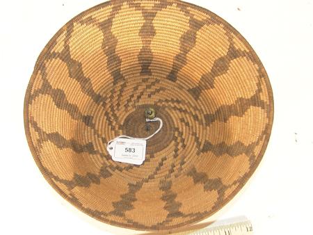 Bowl shaped basket with whirlwind base and diamond Y encircling. 3-3/4" x 10-1/2"