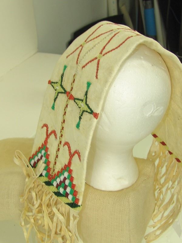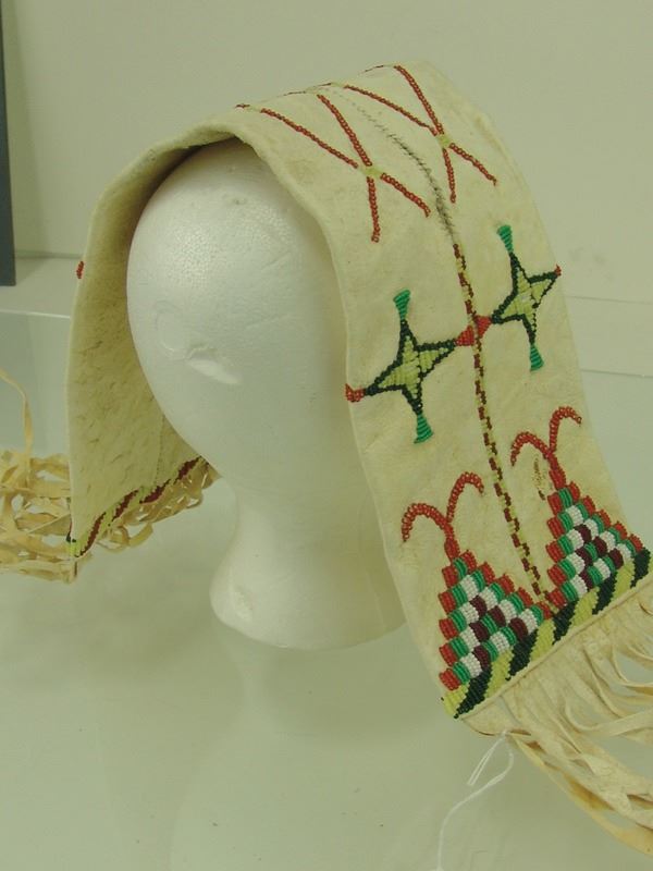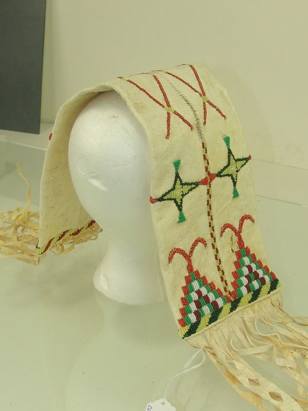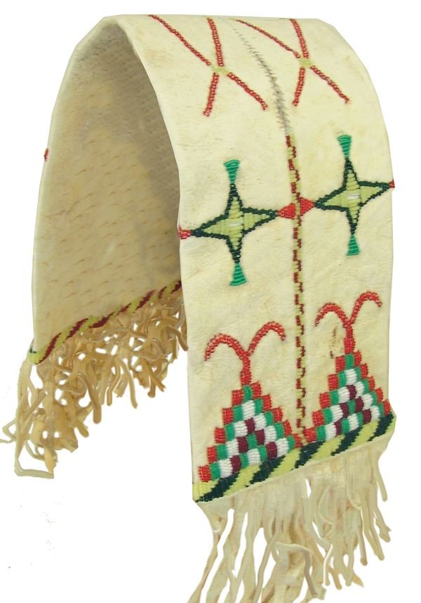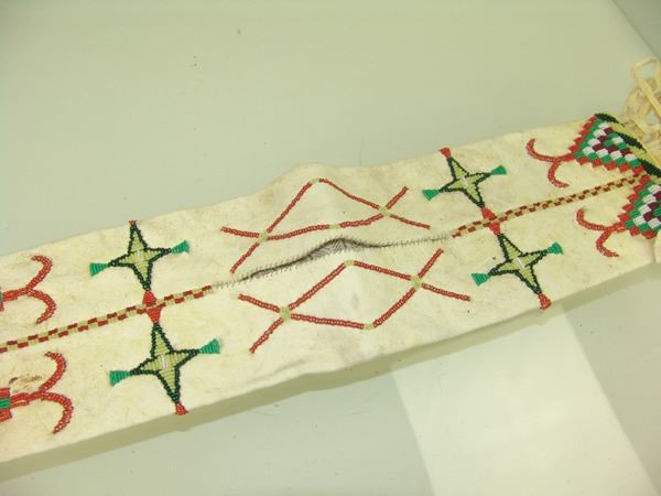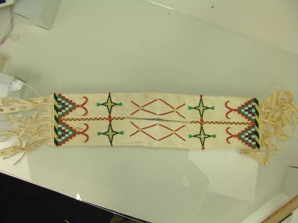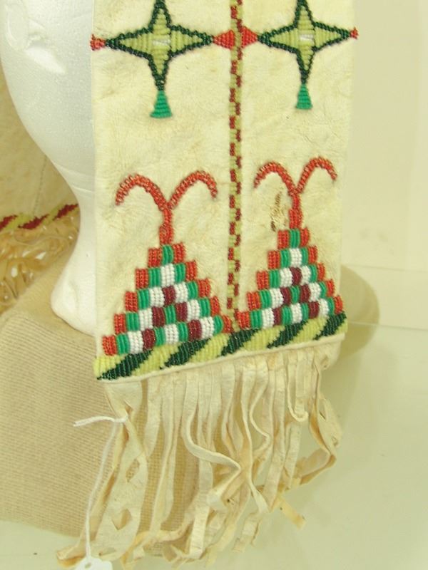 Mid 1900s 22" Rare, smaller sized buckskin slit bag with beaded designs over the surface, cut-out suspensions, and buckskin fringe. Very good condition. **These are from the private display collection of the "Largest Rose Tree in the World, and Museum" which has been located in downtown Tombstone, AZ for the last 30 years.