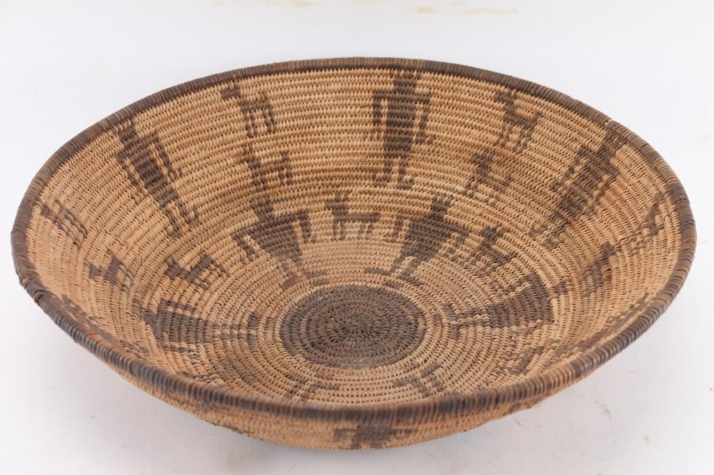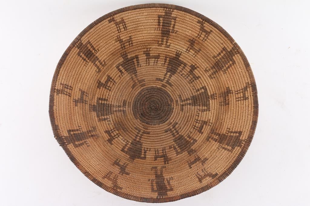 Two tone basket shows some light fading in interior. 12 1/2 x 3". In overall good condition, no losses. From the Steve Goldstein Collection, Scottsdale, AZ.