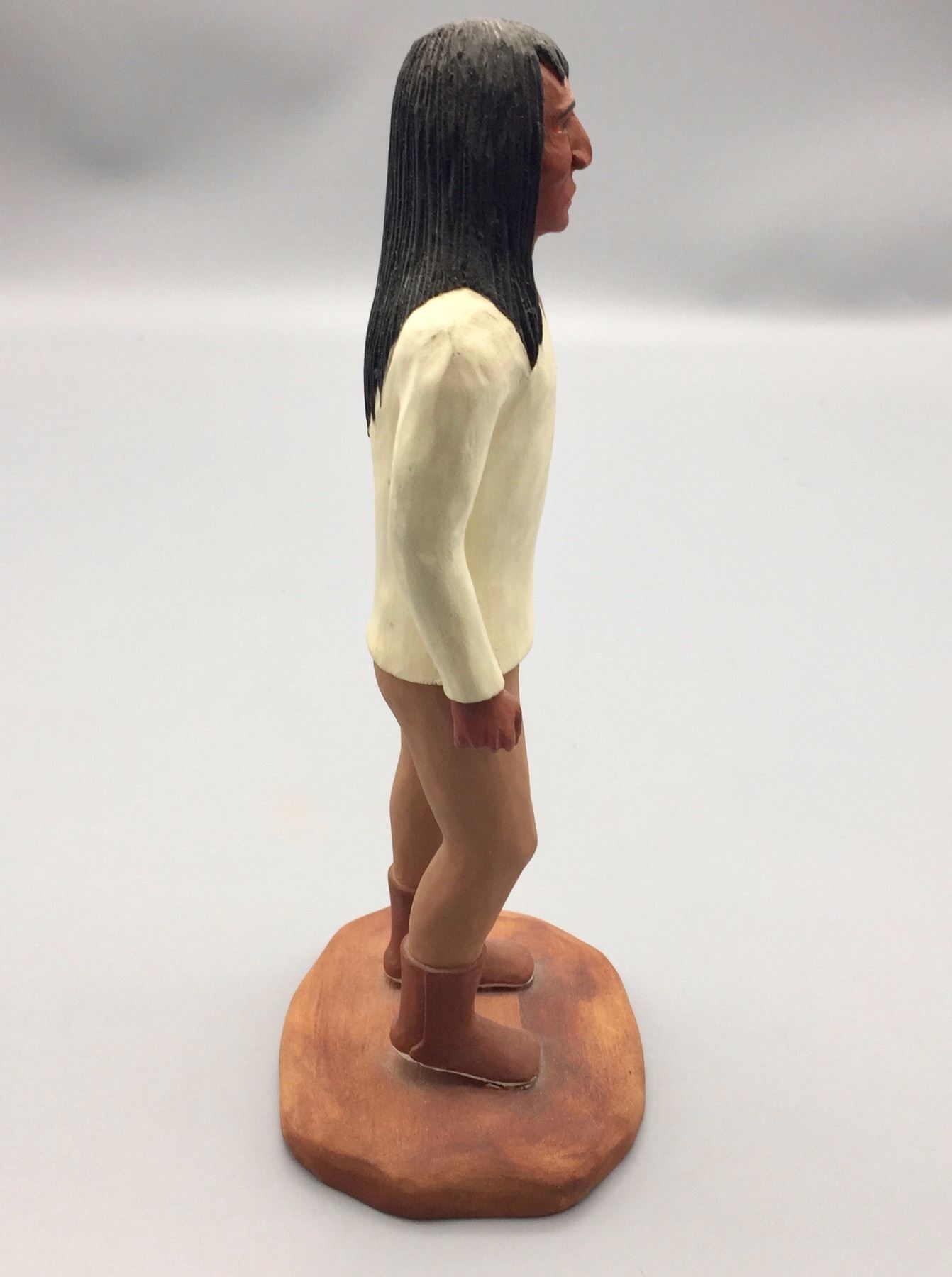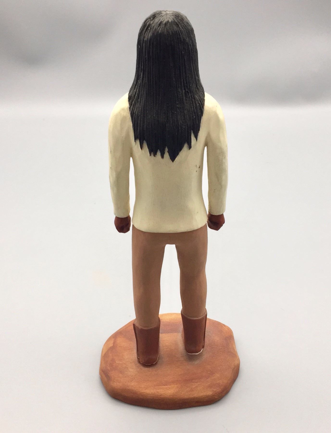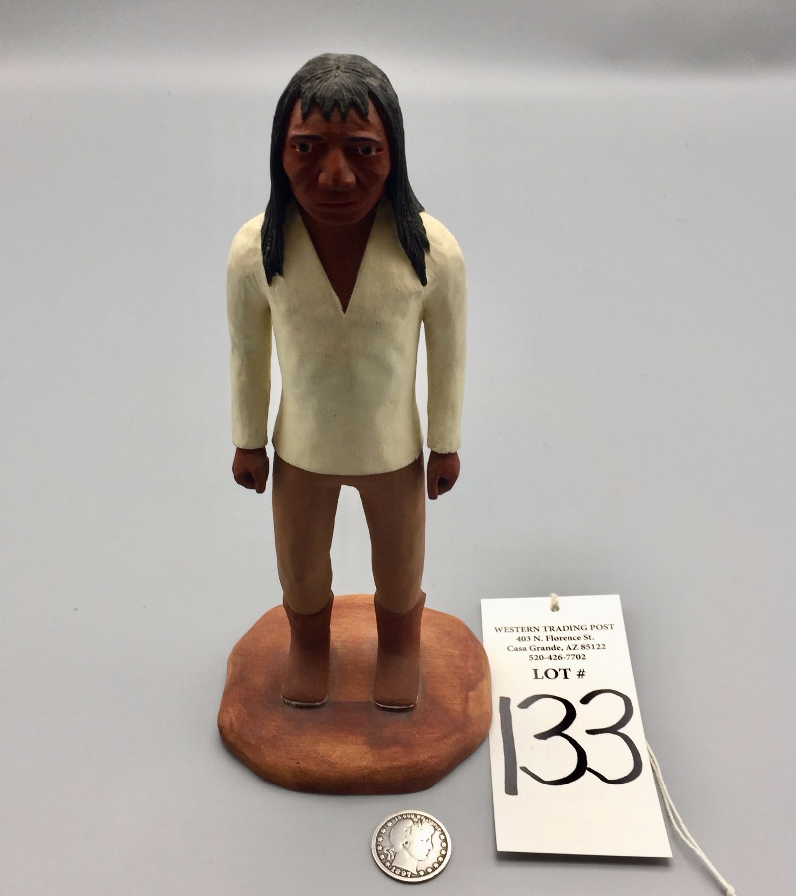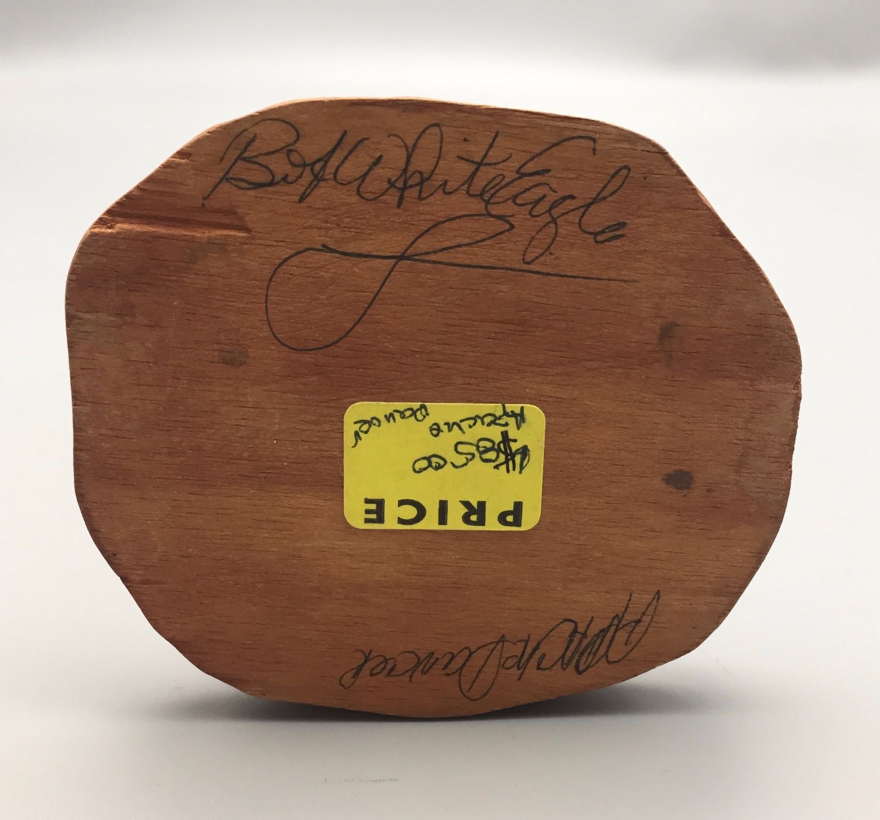 Maker: Signed, WhiteEagle. Approx. Age: Fairly contemporary. Size: Measures 8 1/2” tall x 3 1/2” w. Additional Info: Hand carved and painted wooden statue, titled “Apache Dancer” by WhiteEagle. Condition: Good. Please look closely at the pictures - they are an important part of our description. Shipping: There will be a $7 handling / packaging fee for shipping this lot. The actual cost of postage will be added on top of that.