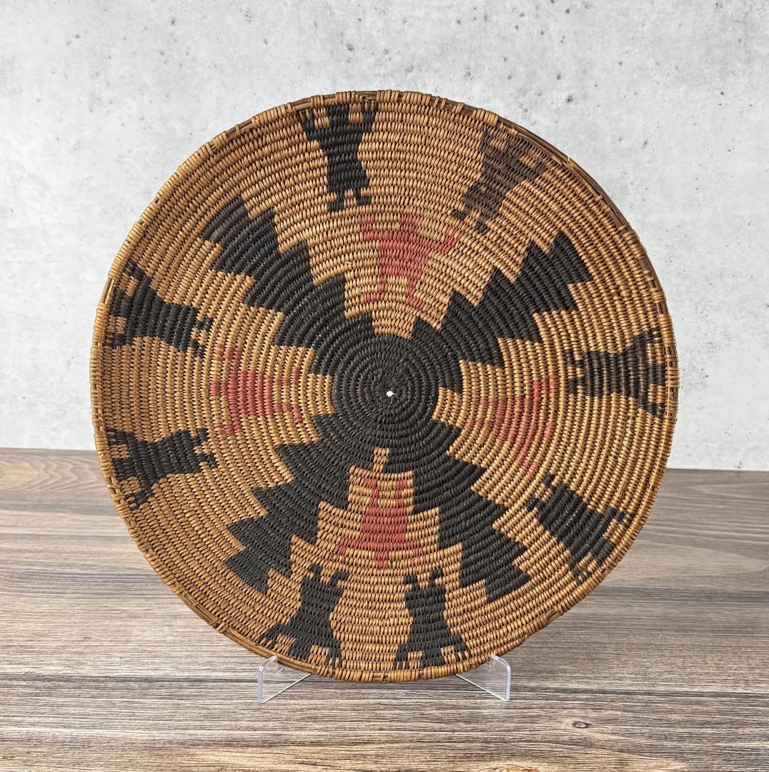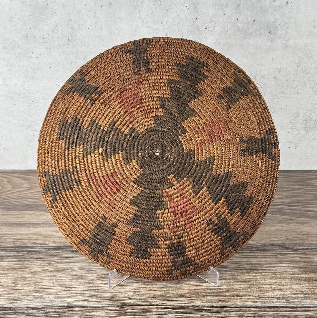 Polychrome design. Nice old basket. 14 1/2" diameter.