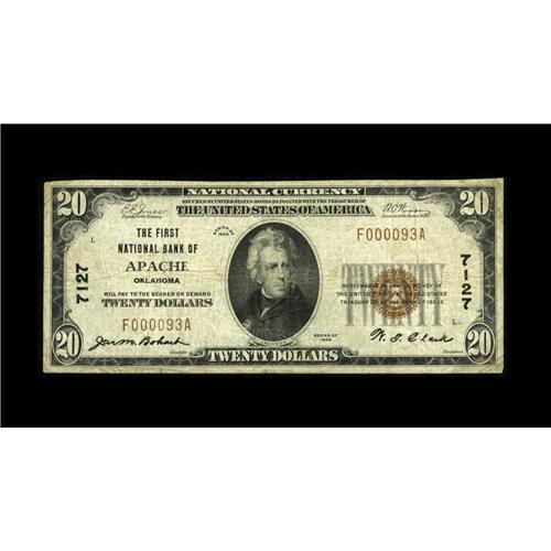 Apache, OK - $20 1929 Ty. 1 The First NB Ch. # 7127This