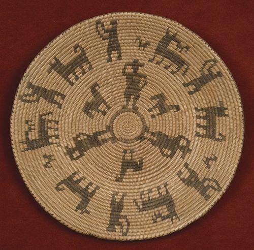 Apache Pictorial Basket. 5 ½” x 18”. 20 animal and human figures. Highly unusual. c. 1900-1910. Excellent condition. (est $5,000-7,000).