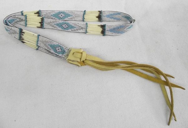 Apache Quill and Bead Hatband. Great diamond design beaded sections with real quill sections and leather end ties. Measures 23'' around and 0.5''W.