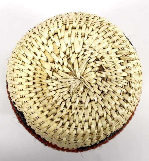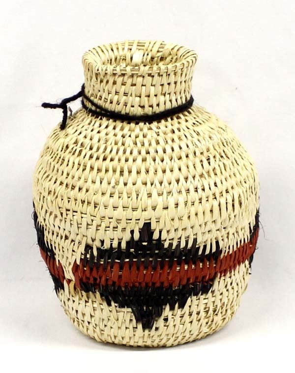 Native American Apache Tri-Color Split Stitch Basket, measures 6.5''D x 7''H