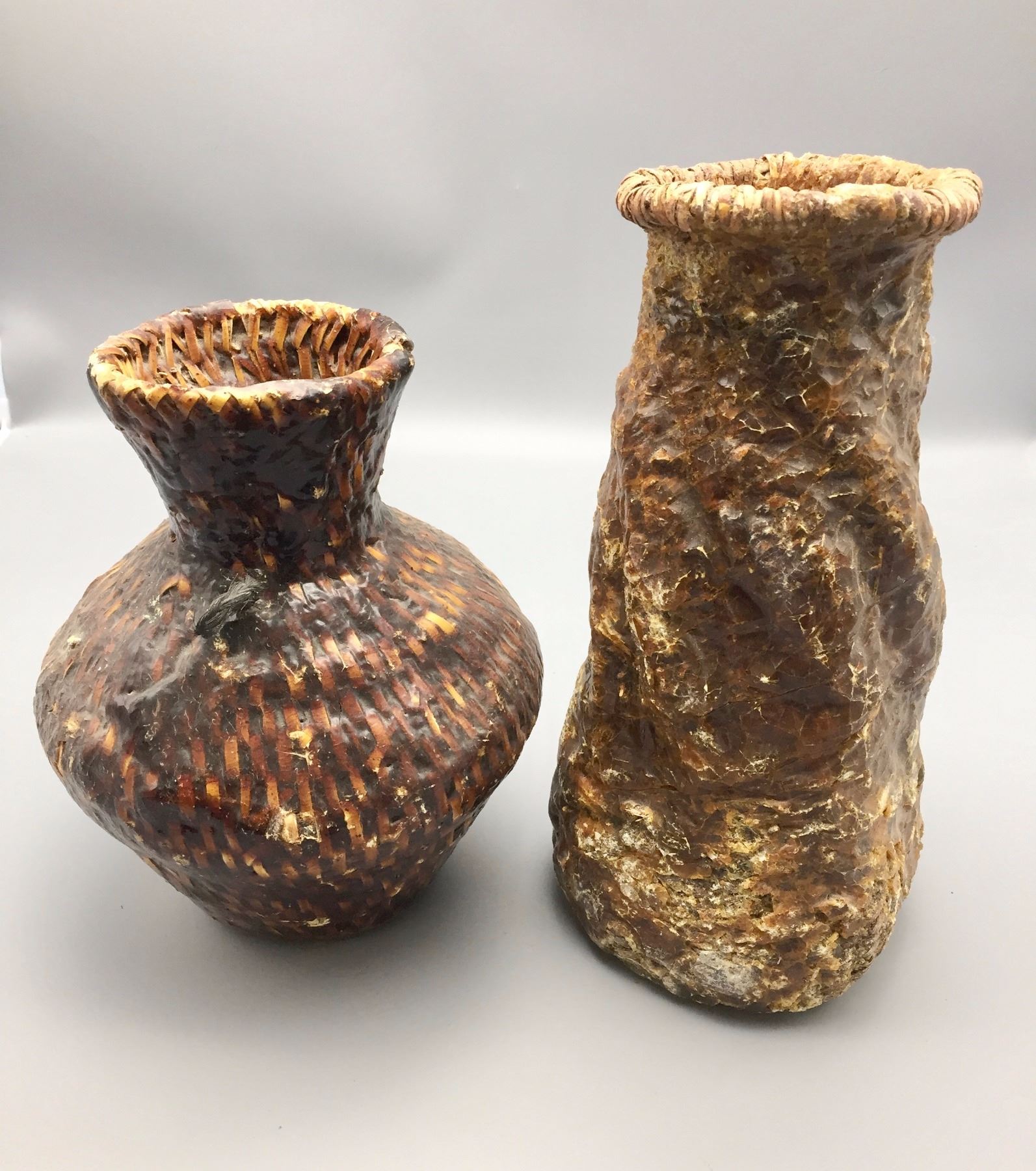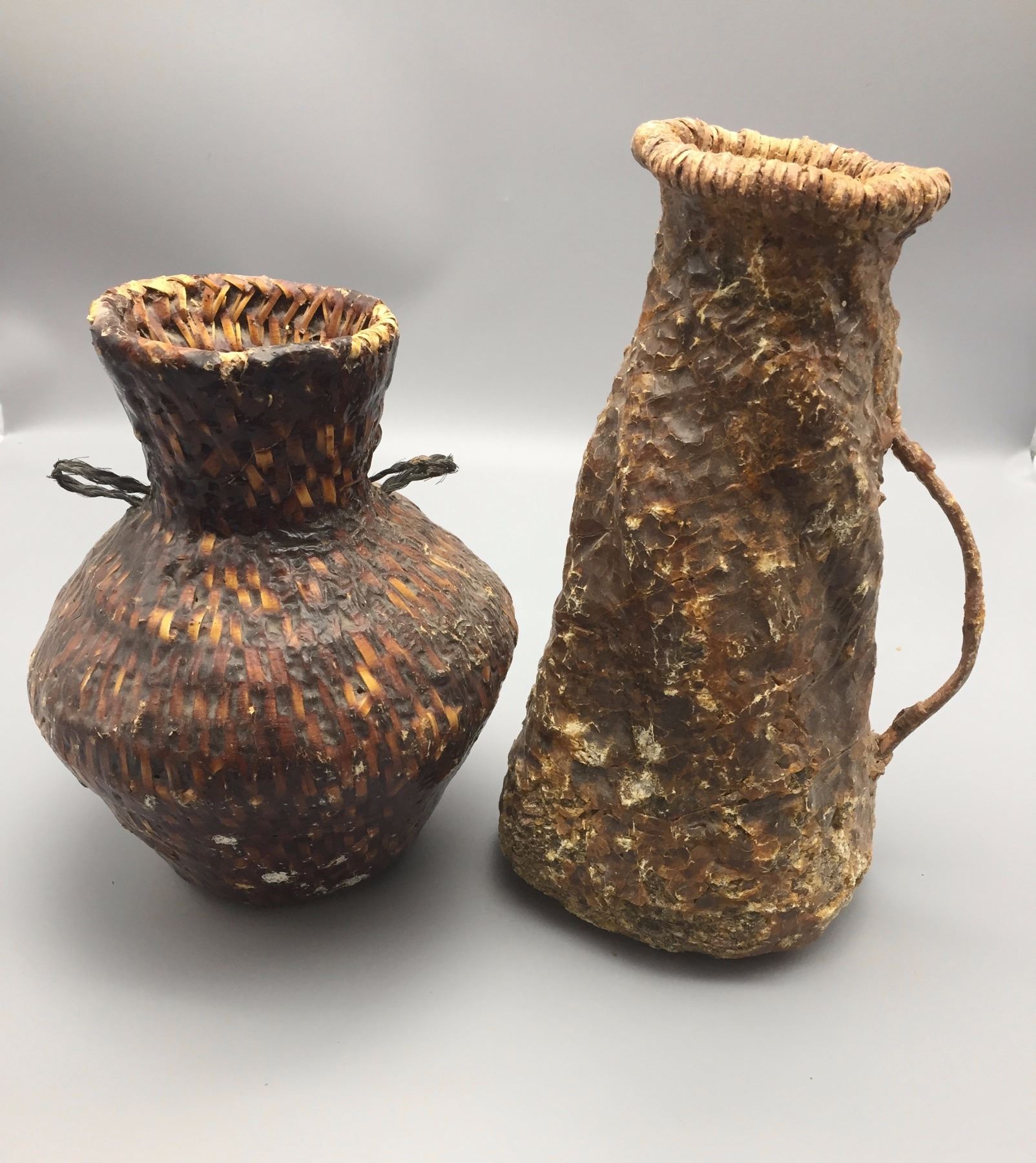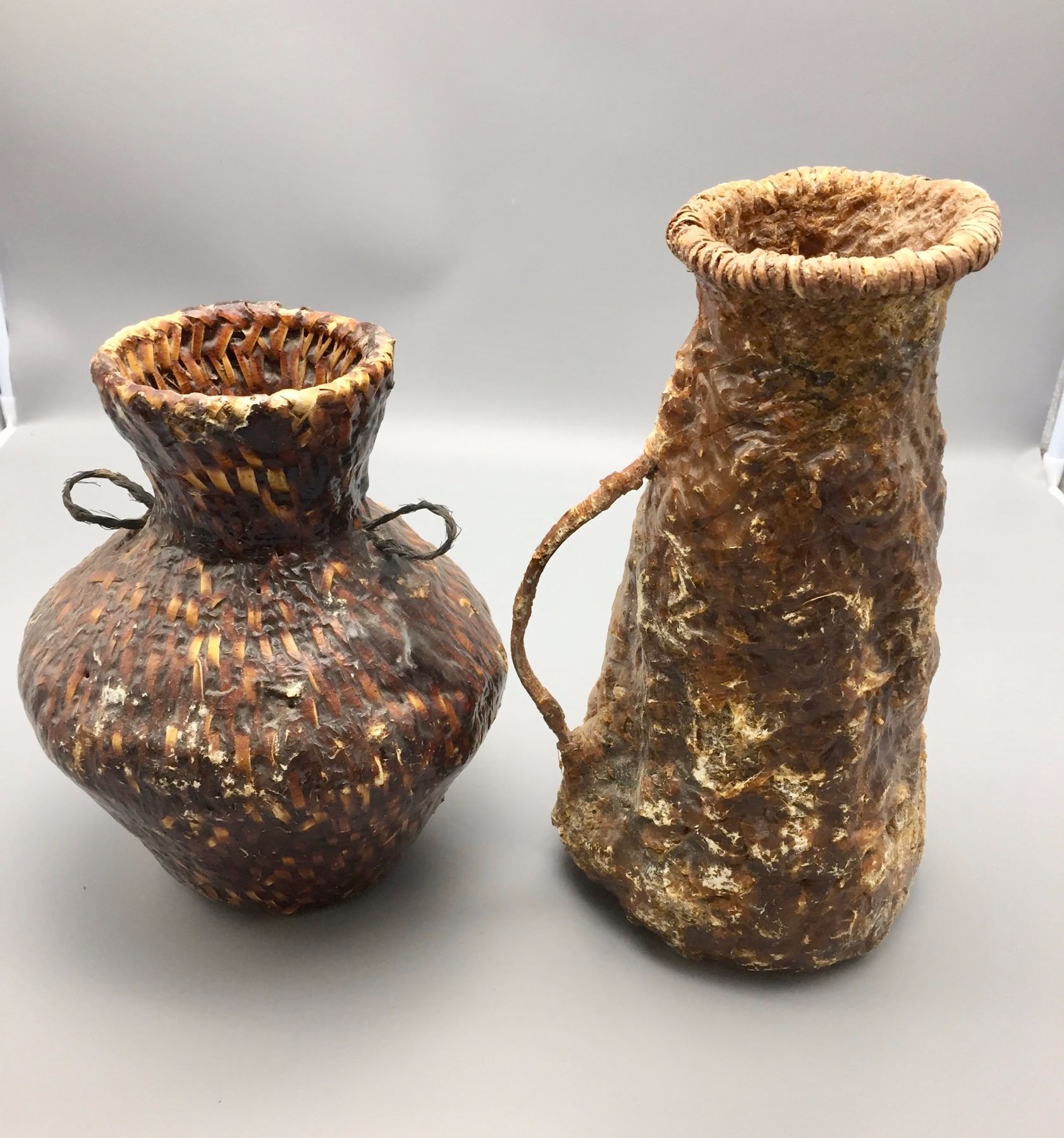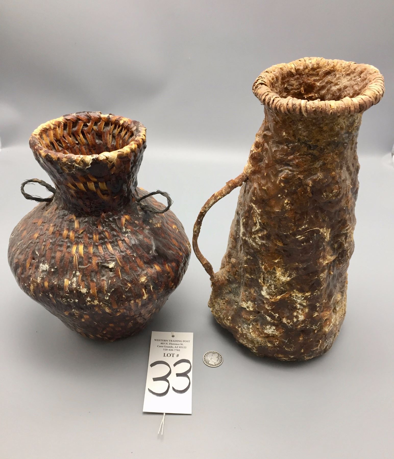 Maker: Unknown. Approx. Age: Vintage. Size: 1) 8” w x 10” h. 2) 7” w x 12” h. Additional Info: Apache ‘Tus’ baskets. Condition: Pretty good for their age, but not perfect, some wear expected. Please look closely at the pictures - they are an important part of our description. Shipping: There will be a $8 handling / packaging fee for shipping this lot. The actual cost of postage will be added on top of that.