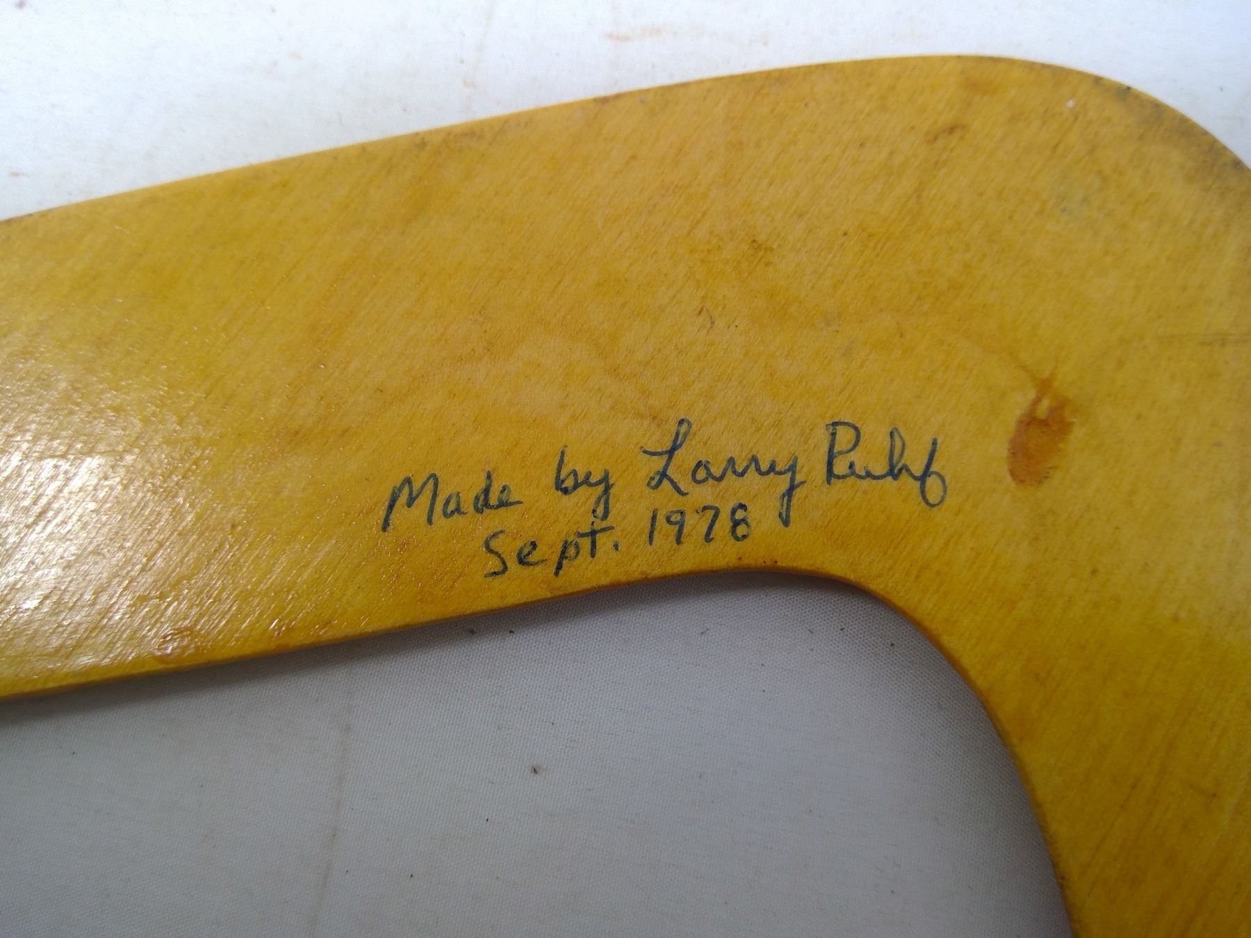 Apex "A" Eagle Boomerang. Righthander, Made in 1978 by Larry Ruhf