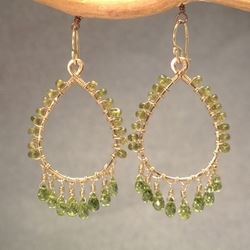 Metal: SilverHammered drop hoop wrapped with idocrase, about 1-1/2" long Available in either 14K gold-filled, rose gold-filled, or sterling silver. All jewelry is entirely handmade in our studio in New York.