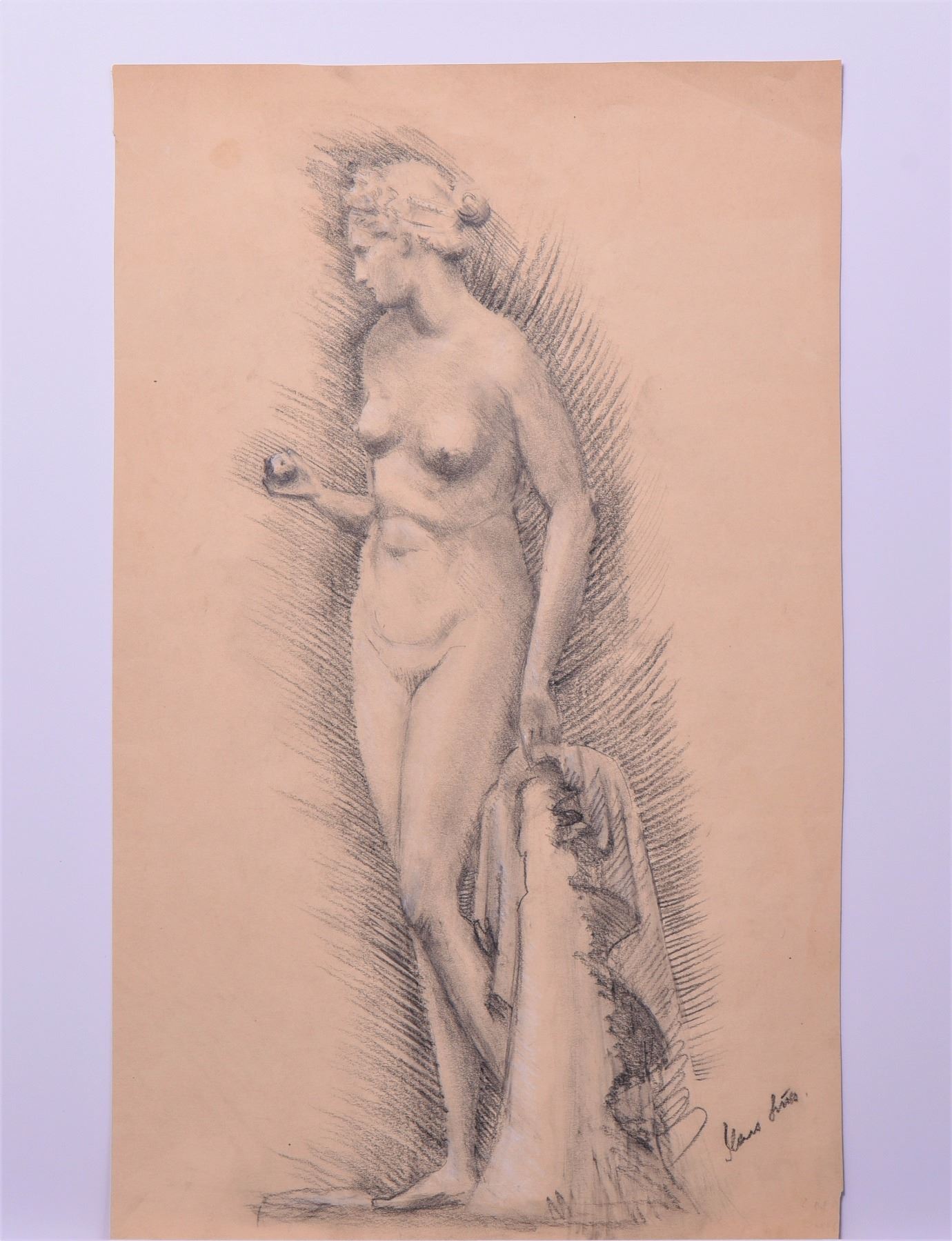 Aphrodite "Judgement of Paris" Original drawing from the 1800s. The Judgement of Paris was painted frequently by academic artists of the 19th century. Beautifully executed nude drawing artist signed on period correct paper.