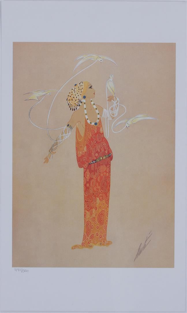 Wonderful numbered lithograph of Erte's Aphrodite. The print alone is 11 x 14.5 inches with a wide margin on the top and bottom. Limited edition of 500 prints from Colonial Art Gallery OKC which once owned the original. Good quality of color and paper. COA from owner, Willard Johnson, Limited edition of #500 circa 1990.