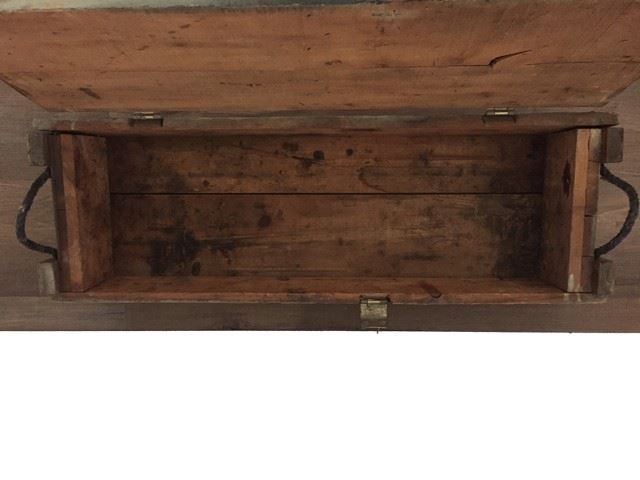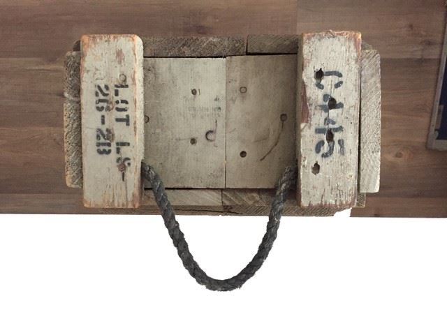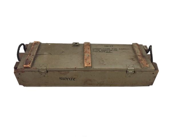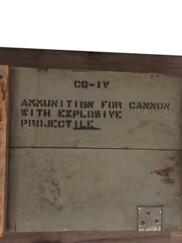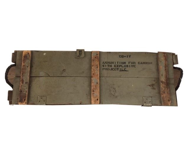 Apocalypse Now (1979) - wooden ammo box, empty with rope handles. On the top of the box it reads "Ammunition for cannon explosive projectile".(37x7x5)
